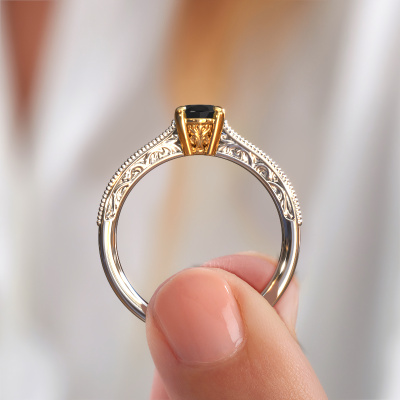 Nous avons donné le nom Shonta OVL à cette bague de fiançailles. Cette bague de fiançailles millegrain forgée en or 14 Carat est sertie d’un diamant noir de 1.184 crt. Votre petite amie a-t-elle un faible pour le vintage ? Vous pouvez donc être sûr que cette bague de fiançailles forgée en or blanc conviendra à son style ! Un nouveau modèle basé sur des motifs fantaisie. Un peu de rêve, un beau design, surtout si vous l’ajustez encore plus à votre goût. De magnifiques diamants noirs ont été sertis sur cette bague de fiançailles solitaire pavé fantaisie. Comme vous pouvez le constater, vous pouvez choisir vous-même une pierre précieuse qui convient à votre petite amie. Chaque pierre précieuse est soigneusement sélectionnée par nos commerçants du monde entier. Notre orfèvre ne veut travailler que les plus belles pierres précieuses sur votre bijou. Après tout, c'est la couronne de son travail ! Chaque bijou est unique car vous pouvez entièrement l'assembler à votre guise.En combinant les dernières techniques modernes, associées à une fabrication ancienne, nous sommes en mesure de fabriquer nos bagues de fiançailles dans notre propre studio. Chaque bijou est fabriqué sur commande. Ceci est avantageux car nous sommes en mesure de vous proposer un prix que vous ne trouverez nulle part ailleurs.Notre équipe ajoute quotidiennement de nouveaux modèles à notre collection en ligne. Nos designers et orfèvres travaillent ensemble pour créer le meilleur design. Nous nous efforçons d'offrir une collection diversifiée de bijoux. Peut-être avez-vous déjà en tête un bijou en particulier ? Un bijou que vous avez trouvé quelque part. Veuillez nous contacter pour une consultation gratuite. Nous vous ferons une offre, basée sur un rapport qualité / prix juste, qui vous déconcertera.Pour vous faciliter la tâche, vous pouvez facilement nous retourner tout bijou commandé dans les 30 jours suivant la livraison.