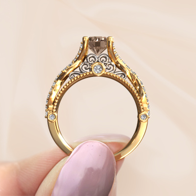 Nous avons donné le nom Chantelle à cette bague de fiançailles. Cette bague de fiançailles osés forgée en or 14 Carat est sertie d’un diamant brun de 1.399 crt. Votre petite amie a-t-elle un faible pour le vintage ? Vous pouvez donc être sûr que cette bague de fiançailles forgée en or jaune conviendra à son style ! Un nouveau modèle basé sur des motifs vintage. Un peu de rêve, un beau design, surtout si vous l’ajustez encore plus à votre goût. De magnifiques diamants bruns ont été sertis sur cette bague de fiançailles solitaire pavé vintage. Comme vous pouvez le constater, vous pouvez choisir vous-même une pierre précieuse qui convient à votre petite amie. Chaque pierre précieuse est soigneusement sélectionnée par nos commerçants du monde entier. Notre orfèvre ne veut travailler que les plus belles pierres précieuses sur votre bijou. Après tout, c'est la couronne de son travail ! Chaque bijou est fabriquée par une équipe d'orfèvres et de designers motivés. Cela permettra à cette pièce unique d'attirer tous les regards.Vous avez peut-être remarqué que nos prix sont en moyenne inférieurs de 30% à ceux d'un autre bijoutier. Et ce alors que la qualité de nos bijoux est même plus élevée dans la plupart des cas ! En effet, nos orfèvres fabriquent votre bague de fiançailles directement dans notre propre atelier. Cela signifie que nous n'avons pas à inclure des frais de stocks coûteux et que nous pouvons travailler n'importe quel détail directement sur votre bague de fiançailles.Notre équipe de designers talentueux et passionnés ajoute chaque jour de nouveaux modèles bague de fiançailles à notre collection en ligne. Notre objectif est de pouvoir vous offrir une grande variété de bijoux. N'hésitez pas à demander un devis si vous avez des souhaits spécifiques pour votre bague de fiançailles. Nous garantissons de vous faire une offre que vous ne pourrez pas refuser.Pour vous faciliter la tâche, vous pouvez facilement nous retourner tout bijou commandé dans les 30 jours suivant la livraison.