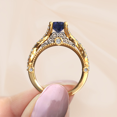 Nous avons donné le nom Chantelle à cette bague de fiançailles. Cette bague de fiançailles osés forgée en or 14 Carat est sertie d’un saphir de 6.5 mm. Votre petite amie a-t-elle un faible pour le vintage ? Vous pouvez donc être sûr que cette bague de fiançailles forgée en or jaune conviendra à son style ! Un nouveau modèle basé sur des motifs vintage. Un peu de rêve, un beau design, surtout si vous l’ajustez encore plus à votre goût. De magnifiques saphir ont été sertis sur cette bague de fiançailles solitaire pavé vintage. Comme vous pouvez le constater, vous pouvez choisir vous-même une pierre précieuse qui convient à votre petite amie. Chaque pierre précieuse est soigneusement sélectionnée par nos commerçants du monde entier. Notre orfèvre ne veut travailler que les plus belles pierres précieuses sur votre bijou. Après tout, c'est la couronne de son travail ! Chaque bijou est fabriquée par une équipe d'orfèvres et de designers motivés. Cela permettra à cette pièce unique d'attirer tous les regards.Vous avez peut-être remarqué que nos prix sont en moyenne inférieurs de 30% à ceux d'un autre bijoutier. Et ce alors que la qualité de nos bijoux est même plus élevée dans la plupart des cas ! En effet, nos orfèvres fabriquent votre bague de fiançailles directement dans notre propre atelier. Cela signifie que nous n'avons pas à inclure des frais de stocks coûteux et que nous pouvons travailler n'importe quel détail directement sur votre bague de fiançailles.Notre équipe de designers talentueux et passionnés ajoute chaque jour de nouveaux modèles bague de fiançailles à notre collection en ligne. Notre objectif est de pouvoir vous offrir une grande variété de bijoux. N'hésitez pas à demander un devis si vous avez des souhaits spécifiques pour votre bague de fiançailles. Nous garantissons de vous faire une offre que vous ne pourrez pas refuser.Pour vous faciliter la tâche, vous pouvez facilement nous retourner tout bijou commandé dans les 30 jours suivant la livraison.