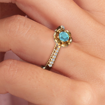 Nous avons donné le nom Abbey à cette bague de fiançailles. Cette bague de fiançailles millegrain forgée en or 14 Carat est sertie d’un topaze bleue de 4.2 mm. Votre petite amie a-t-elle un faible pour le vintage ? Vous pouvez donc être sûr que cette bague de fiançailles forgée en or jaune conviendra à son style ! Un nouveau modèle basé sur des motifs vintage. Un peu de rêve, un beau design, surtout si vous l’ajustez encore plus à votre goût. De magnifiques topaze bleue ont été sertis sur cette bague de fiançailles solitaire pavé vintage. Comme vous pouvez le constater, vous pouvez choisir vous-même une pierre précieuse qui convient à votre petite amie. Chaque pierre précieuse est soigneusement sélectionnée par nos commerçants du monde entier. Notre orfèvre ne veut travailler que les plus belles pierres précieuses sur votre bijou. Après tout, c'est la couronne de son travail ! Chaque bijou est faite spécialement pour vous, avec une attention particulière portée aux détails et au design.Qu'y a-t-il dorénavant de plus beau qu'une bague de fiançailles vintage conçue par vous-même et fabriquée à la main par nous. Vous pouvez personnaliser chaque modèle avec les différents métaux précieux et pierres précieuses. De cette façon, vous pourrez créer une bague de fiançailles unique. Cette bague peut être mise en place de plusieurs façons. Bien sûr, vous pouvez toujours nous contacter et nous serons heureux de vous aider à composer votre bague de fiançailles vintage Abbey. Vous aimez le design, mais vous souhaitez tout de même quelque chose qui vous convienne plus, ou bien vous souhaitez une pierre précieuse dans les bijoux que vous ne pouvez pas choisir sur notre site, contactez-nous et nous vous aiderons.Notre équipe de designers talentueux et passionnés ajoute chaque jour de nouveaux modèles bague de fiançailles à notre collection en ligne. Notre objectif est de pouvoir vous offrir une grande variété de bijoux. N'hésitez pas à demander un devis si vous avez des souhaits spécifiques pour votre bague de fiançailles. Nous garantissons de vous faire une offre que vous ne pourrez pas refuser.Pour vous faciliter la tâche, vous pouvez facilement nous retourner tout bijou commandé dans les 30 jours suivant la livraison.