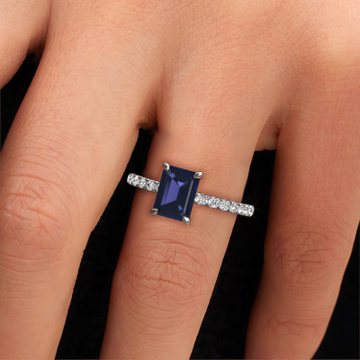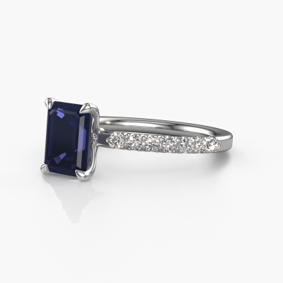 Nous avons donné le nom Crystal EME 2 à la bague de fiançailles mentionnée ci-dessous. Ce type de bague de fiançailles est appelée une bague de fiançailles solitaire car elle ne contient qu’une seule pierre précieuse. La bague de fiançailles est forgée en or et comporte un saphir taille émeraude d’une la de 8x6 mm. Cette bague de fiançailles solitaire forgée en platine exclusives sertie d’un beau saphir taille émeraude est une magnifique bague de fiançailles. Grâce au fait que le sertissage de chaton soit ouvert, l’effet de lumière sur la pierre précieuse est optimal. Nous plaçons également la pierre précieuse en élévation sur la bague, ce qui la rendra encore plus frappante. Par exemple, le diamants est une belle pierre précieuse à offrir à l'amour de votre vie, car il symbolise l'amour éternel et la pureté. Et ce symbole rayonne au milieu de cette bague solitaire. Ainsi, chaque pierre précieuse a une belle signification symbolique. Vous pouvez concevoir vous-même cette bague de fiançailles solitaire dans différentes combinaisons de métaux précieux. Celle-ci a une combinaison d'or avec or de l’rouge. Chaque bijou est fabriquée spécialement pour vous par nos maîtres orfèvres dans notre propre atelier.En combinant les dernières techniques modernes, associées à une fabrication ancienne, nous sommes en mesure de fabriquer nos bagues de fiançailles dans notre propre studio. Chaque bijou est fabriqué sur commande. Ceci est avantageux car nous sommes en mesure de vous proposer un prix que vous ne trouverez nulle part ailleurs.Notre équipe ajoute quotidiennement de nouveaux modèles à notre collection en ligne. Nos designers et orfèvres travaillent ensemble pour créer le meilleur design. Nous nous efforçons d'offrir une collection diversifiée de bijoux. Peut-être avez-vous déjà en tête un bijou en particulier ? Un bijou que vous avez trouvé quelque part. Veuillez nous contacter pour une consultation gratuite. Nous vous ferons une offre, basée sur un rapport qualité / prix juste, qui vous déconcertera.Pour vous faciliter la tâche, vous pouvez facilement nous retourner tout bijou commandé dans les 30 jours suivant la livraison.