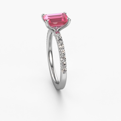 Nous avons donné le nom Crystal EME 2 à la bague de fiançailles mentionnée ci-dessous. Ce type de bague de fiançailles est appelée une bague de fiançailles solitaire car elle ne contient qu’une seule pierre précieuse. La bague de fiançailles est forgée en or et comporte un saphir rose taille émeraude d’une la de 8x6 mm. Cette bague de fiançailles solitaire forgée en platine exclusives sertie d’un beau saphir rose taille émeraude est une magnifique bague de fiançailles. Grâce au fait que le sertissage de chaton soit ouvert, l’effet de lumière sur la pierre précieuse est optimal. Nous plaçons également la pierre précieuse en élévation sur la bague, ce qui la rendra encore plus frappante. Par exemple, le diamants est une belle pierre précieuse à offrir à l'amour de votre vie, car il symbolise l'amour éternel et la pureté. Et ce symbole rayonne au milieu de cette bague solitaire. Ainsi, chaque pierre précieuse a une belle signification symbolique. Vous pouvez concevoir vous-même cette bague de fiançailles solitaire dans différentes combinaisons de métaux précieux. Celle-ci a une combinaison d'or avec or de l’rouge. Chaque bijou est fabriquée spécialement pour vous par nos maîtres orfèvres dans notre propre atelier.En combinant les dernières techniques modernes, associées à une fabrication ancienne, nous sommes en mesure de fabriquer nos bagues de fiançailles dans notre propre studio. Chaque bijou est fabriqué sur commande. Ceci est avantageux car nous sommes en mesure de vous proposer un prix que vous ne trouverez nulle part ailleurs.Notre équipe ajoute quotidiennement de nouveaux modèles à notre collection en ligne. Nos designers et orfèvres travaillent ensemble pour créer le meilleur design. Nous nous efforçons d'offrir une collection diversifiée de bijoux. Peut-être avez-vous déjà en tête un bijou en particulier ? Un bijou que vous avez trouvé quelque part. Veuillez nous contacter pour une consultation gratuite. Nous vous ferons une offre, basée sur un rapport qualité / prix juste, qui vous déconcertera.Pour vous faciliter la tâche, vous pouvez facilement nous retourner tout bijou commandé dans les 30 jours suivant la livraison.