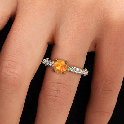Cette bague de fiançailles spéciales porte le nom Shaunda. Cette bague forgée en or 14 Carat est sertie d’un citrine de 6 mm. Il y a une personne dans votre vie qui quand elle se présente devant vous, votre cœur bat plus vite, ce qui est vraiment unique pour vous. Et c’est précisément cette personne qui mérite quelque chose de spécial, quelque chose d’unique et qui a été conçu spécialement pour elle. Nous soupçonnons que cette bague de fiançailles s'intègre bien dans cette situation. Tous les détails de cette bague de fiançailles unique forgée en or blanc sont composés, travaillés et polis à la main par notre orfèvre dans l'atelier ci-dessous. Notre objectif est que la conception et la composition de la bague de fiançailles renforcent et rayonnent les beaux citrines. Un travail très précis, qui donne finalement à un résultat magnifique. Et c’est exactement ce que nous voulons, cela nous rend très enthousiastes. L’avantage de notre outil de configuration est que vous pouvez concevoir entièrement vos propres bijoux pour créer votre propre bijou. Cette bague de fiançailles solitaire pavé est faite à partir de la combinaison de métaux précieux : de l’or avec de l’or jaune, mais vous pouvez également choisir une autre couleur d’or. Chaque bijou est fabriquées avec passion et amour par l'un de nos maîtres orfèvres.En combinant les dernières techniques modernes, associées à une fabrication ancienne, nous sommes en mesure de fabriquer nos bagues de fiançailles dans notre propre studio. Chaque bijou est fabriqué sur commande. Ceci est avantageux car nous sommes en mesure de vous proposer un prix que vous ne trouverez nulle part ailleurs.Notre équipe de designers talentueux et passionnés ajoute chaque jour de nouveaux modèles bague de fiançailles à notre collection en ligne. Notre objectif est de pouvoir vous offrir une grande variété de bijoux. N'hésitez pas à demander un devis si vous avez des souhaits spécifiques pour votre bague de fiançailles. Nous garantissons de vous faire une offre que vous ne pourrez pas refuser.Pour vous faciliter la tâche, vous pouvez facilement nous retourner tout bijou commandé dans les 30 jours suivant la livraison.