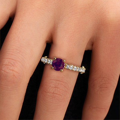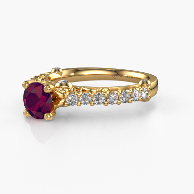 Cette bague de fiançailles spéciales porte le nom Shaunda. Cette bague forgée en or 14 Carat est sertie d’un rhodolite de 6 mm. Il y a une personne dans votre vie qui quand elle se présente devant vous, votre cœur bat plus vite, ce qui est vraiment unique pour vous. Et c’est précisément cette personne qui mérite quelque chose de spécial, quelque chose d’unique et qui a été conçu spécialement pour elle. Nous soupçonnons que cette bague de fiançailles s'intègre bien dans cette situation. Tous les détails de cette bague de fiançailles unique forgée en or jaune sont composés, travaillés et polis à la main par notre orfèvre dans l'atelier ci-dessous. Notre objectif est que la conception et la composition de la bague de fiançailles renforcent et rayonnent les beaux rhodolites. Un travail très précis, qui donne finalement à un résultat magnifique. Et c’est exactement ce que nous voulons, cela nous rend très enthousiastes. L’avantage de notre outil de configuration est que vous pouvez concevoir entièrement vos propres bijoux pour créer votre propre bijou. Cette bague de fiançailles solitaire pavé est faite à partir de la combinaison de métaux précieux : de l’or avec de l’or jaune, mais vous pouvez également choisir une autre couleur d’or. Chaque bijou est fabriquées avec passion et amour par l'un de nos maîtres orfèvres.En combinant les dernières techniques modernes, associées à une fabrication ancienne, nous sommes en mesure de fabriquer nos bagues de fiançailles dans notre propre studio. Chaque bijou est fabriqué sur commande. Ceci est avantageux car nous sommes en mesure de vous proposer un prix que vous ne trouverez nulle part ailleurs.Notre équipe de designers talentueux et passionnés ajoute chaque jour de nouveaux modèles bague de fiançailles à notre collection en ligne. Notre objectif est de pouvoir vous offrir une grande variété de bijoux. N'hésitez pas à demander un devis si vous avez des souhaits spécifiques pour votre bague de fiançailles. Nous garantissons de vous faire une offre que vous ne pourrez pas refuser.Pour vous faciliter la tâche, vous pouvez facilement nous retourner tout bijou commandé dans les 30 jours suivant la livraison.