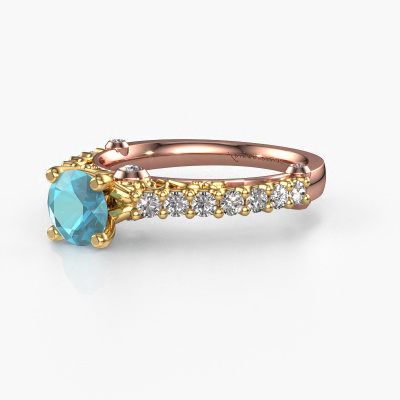 Cette bague de fiançailles spéciales porte le nom Shaunda. Cette bague forgée en or 14 Carat est sertie d’un topaze bleue de 6 mm. Il y a une personne dans votre vie qui quand elle se présente devant vous, votre cœur bat plus vite, ce qui est vraiment unique pour vous. Et c’est précisément cette personne qui mérite quelque chose de spécial, quelque chose d’unique et qui a été conçu spécialement pour elle. Nous soupçonnons que cette bague de fiançailles s'intègre bien dans cette situation. Tous les détails de cette bague de fiançailles unique forgée en or rose sont composés, travaillés et polis à la main par notre orfèvre dans l'atelier ci-dessous. Notre objectif est que la conception et la composition de la bague de fiançailles renforcent et rayonnent les beaux topaze bleue. Un travail très précis, qui donne finalement à un résultat magnifique. Et c’est exactement ce que nous voulons, cela nous rend très enthousiastes. L’avantage de notre outil de configuration est que vous pouvez concevoir entièrement vos propres bijoux pour créer votre propre bijou. Cette bague de fiançailles solitaire pavé est faite à partir de la combinaison de métaux précieux : de l’or avec de l’or jaune, mais vous pouvez également choisir une autre couleur d’or. Chaque bijou est fabriquées avec passion et amour par l'un de nos maîtres orfèvres.En combinant les dernières techniques modernes, associées à une fabrication ancienne, nous sommes en mesure de fabriquer nos bagues de fiançailles dans notre propre studio. Chaque bijou est fabriqué sur commande. Ceci est avantageux car nous sommes en mesure de vous proposer un prix que vous ne trouverez nulle part ailleurs.Notre équipe de designers talentueux et passionnés ajoute chaque jour de nouveaux modèles bague de fiançailles à notre collection en ligne. Notre objectif est de pouvoir vous offrir une grande variété de bijoux. N'hésitez pas à demander un devis si vous avez des souhaits spécifiques pour votre bague de fiançailles. Nous garantissons de vous faire une offre que vous ne pourrez pas refuser.Pour vous faciliter la tâche, vous pouvez facilement nous retourner tout bijou commandé dans les 30 jours suivant la livraison.