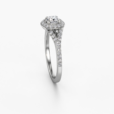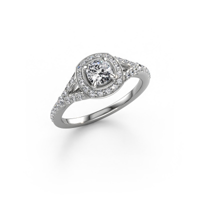 La bague de fiançailles mentionnée ci-dessus est nommée Pamela CUS. Nous appelons ce type de bague de fiançailles une bague Halo. La bague de fiançailles est forgée en or et comporte un diamant coussin de la de 0.50 crt et autour duquel sont sertis de petits diamants synthétiques. La largeur de cette bague de fiançailles solitaire pavé forgée en platine luxes vient des plus petites pierres précieuses qui sont serties autour du large diamant central. C’est également ce à partir de quoi cette belle bague de fiançailles tire son nom : solitaire pavé signifie halo et c’est aussi l’effet que rendent les pierres précieuses plus petites. Cependant, ces pierres précieuses plus petites doivent toutes être serties de la même manière, afin que la lumière ne soit pas seulement introduite dans le diamant et qu’un véritable halo de lumière soit créé. Et c'est ce que font nos maîtres orfèvres. Avec la plus grande précision, chaque diamant soigneusement sélectionné est placé à la main dans la bague de fiançailles. Encore et encore, la bague de fiançailles est maintenue à la lumière pour voir si l'effet spécial est toujours visible. Le résultat est une bague de fiançailles unique, où le diamant choisi devient littéralement le centre brillants. Vous pouvez imaginer que cette bague de fiançailles est vraiment une bague de fiançailles significative à offrir à votre amour de la vie ! Le jour où vous montrez qu’elle est votre centre brillants ! Saviez-vous que nous offrons la garantie du meilleur prix pour votre bague de fiançailles? Cela est possible car tous nos bijoux sont fabriqués à la main dans notre propre atelier. Nous n'avons pas de frais de stocks qui sont coûteux, et nous fabriquons votre bague uniquement une fois que vous l'avez commandée. Grâce au fait que nous ayons toute la production du bijou en main, nous pouvons vous informer sur toutes les caractéristiques de cette bague de fiançailles. C’est précisément parce que l’achat d’une bague en ligne est une expérience excitante que nous comprenons qu’il est plus confortable pour vous de connaître toutes les caractéristiques de votre bague.Notre équipe ajoute quotidiennement de nouveaux modèles à notre collection en ligne. Nos designers et orfèvres travaillent ensemble pour créer le meilleur design. Nous nous efforçons d'offrir une collection diversifiée de bijoux. Peut-être avez-vous déjà en tête un bijou en particulier ? Un bijou que vous avez trouvé quelque part. Veuillez nous contacter pour une consultation gratuite. Nous vous ferons une offre, basée sur un rapport qualité / prix juste, qui vous déconcertera.Pour vous faciliter la tâche, vous pouvez facilement nous retourner tout bijou commandé dans les 30 jours suivant la livraison.