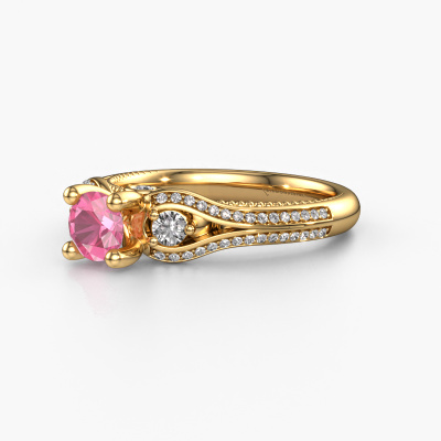 Nous avons donné le nom Nikita à cette bague de fiançailles. Cette bague forgée en or 14 Carat est sertie d’un saphir rose de 5 mm. Cette bague est une large bague vintage forgée en or jaune unique qui fera certainement briller l’amour de votre vie ! Et c'est exactement ce que nous avons comme objectif. Un beau saphir rose est serti dans cette bague de fiançailles vintage. Vous pouvez, bien entendu, utiliser chaque pierre précieuses que nous proposons sur notre site La pierre précieuse sera sélectionnée avec soin, car nous pensons que seule la plus belle des pierres précieuses peut briller sur votre bague de fiançailles de bon goût, qu’en dites-vous ? Notre orfèvre fabrique votre bague de fiançailles dans notre propre atelier et place le saphir rose dans l'anneau de la bague avec une précision extrême. Donc, elle est travaillée et polie jusqu'à ce que le résultat désiré soit visible : la bague de fiançailles parfaite pour l'amour de votre vie ! Ce bijou est fabriquée spécialement pour vous par nos maîtres orfèvres dans notre propre atelier.Nos orfèvres ne fabriqueront votre bague de fiançailles qu'une fois que vous l'aurez commandée. Nous ne faisons pas de stock. L'avantage de cela est que nous n'avons pas à inclure les frais de stockage dans nos prix, et nous pouvons donc vous offrir des bijoux à un prix très bas.Avez-vous déjà des bague de fiançailles spécifiques en tête ? Une bague de fiançailles que vous avez vu quelque part. N'hésitez pas à nous faire part de vos souhaits et nous transformerons votre design en des bague de fiançailles uniques. Vous êtes en mesure de suivre l'évolution de la conception de vos bague de fiançailles car nous utilisons des dessins en 3D. Cela vous donnera un aperçu réaliste de votre design. Nous vous enverrons volontiers une offre sans engagement basée sur un rapport qualité / prix juste. Elle va vous étonner.Pour vous faciliter la tâche, vous pouvez facilement nous retourner tout bijou commandé dans les 30 jours suivant la livraison.