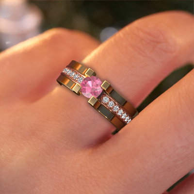 Cette bague de fiançailles porte le nom Myrthe. Cette bague de fiançailles gracieuses est forgée en or 14 Carat et est sertie d’un saphir rose de 5 mm. Cette bague de fiançailles solitaire pavé et forgée en or rose unique est un pur travail d’art ! Tous les petits détails ont été fabriqués avec beaucoup de patience et de passion par notre orfèvre. Ce métier nécessite un œil expert et une main habile pour assembler cette bague de fiançailles avec la plus grande précision. Et ce travail est précisément ce qui enthousiasme nos orfèvres ! Les plus beaux saphirs roses sont sertis de manière large, de telle sorte qu'ils puissent rendre un effet encore meilleurs. Cela donne donc une allure supplémentaire à la bague de fiançailles. La bague de fiançailles est unique en raison de sa pierre précieuse naturelle, que nous avons spécialement sélectionnée pour cette bague. De plus, vous pouvez choisir vous-même la composition du métal précieux de votre bague. Vous aurez donc créé une bague de fiançailles unique pour la femmes la plus unique de votre vie ! Ce bijou est spécialement conçues pour vous, avec une attention particulière portée aux détails et au design.Nos orfèvres ne fabriqueront votre bague de fiançailles qu'une fois que vous l'aurez commandée. Nous ne faisons pas de stock. L'avantage de cela est que nous n'avons pas à inclure les frais de stockage dans nos prix, et nous pouvons donc vous offrir des bijoux à un prix très bas.Notre équipe de designers talentueux et passionnés ajoute chaque jour de nouveaux modèles bague de fiançailles à notre collection en ligne. Notre objectif est de pouvoir vous offrir une grande variété de bijoux. N'hésitez pas à demander un devis si vous avez des souhaits spécifiques pour votre bague de fiançailles. Nous garantissons de vous faire une offre que vous ne pourrez pas refuser.Pour vous faciliter la tâche, vous pouvez facilement nous retourner tout bijou commandé dans les 30 jours suivant la livraison.