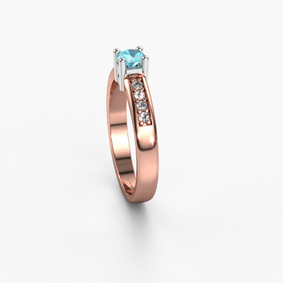 La bague de fiançailles mentionnée ci-dessus a été nommée Eline 2. Ce type de bague de fiançailles est appelé une bague de fiançailles solitaire pavé car elle ne comporte qu’une seule pierre centrale et les tiges de la bague de fiançailles sont également pleins. La bague de fiançailles est faite dans une combinaison d'or 14 Carat et d’or blanc et a un topaze bleue ronds d’une de 3.7 mm, et des diamants sont sertis sur les épaules de l’anneau. Chaque bijou est unique car vous pouvez entièrement l'assembler à votre guise. Cette bague de fiançailles solitaire pavé forgée en or rose modernes a un beau topaze bleue ronds comme pierre centrale, avec plus de topaze bleue sertis dans la bague pour accentuer encore plus la présence de la pierre centrale. Le sertissage à griffes autour du topaze bleue étant ouvert, le topaze bleue capte la lumière de tous les côtés et brille de manière optimale. Ci-dessus, vous pouvez voir comment notre orfèvre travaille la bague de fiançailles avec une extrême précision dans les moindres détails, de telle sorte que le topaze bleue élevé puisse attirer tous les regards. Quelle belle bague de fiançailles à offrir lors de votre demande en mariage à l'amour de votre vie, à votre centre rayonnant ! Puisque nous concevons et livrons nos propres bijoux, nous sommes en mesure de vous proposer une bague de fiançailles à un prix que vous ne pourrez pas trouver ailleurs. Une alliance est fabriquée sur commande, ce qui permet d'éviter les excédents de matériel et nous permet de vous proposer une superbe offre de prix. Nous comprenons qu'acheter votre bague de fiançailles en ligne soit un risque, mais nous vous assistons volontiers dans le processus de conception, en tenant compte de votre budget.Notre équipe ajoute quotidiennement de nouveaux modèles à notre collection en ligne. Nos designers et orfèvres travaillent ensemble pour créer le meilleur design. Nous nous efforçons d'offrir une collection diversifiée de bijoux. Peut-être avez-vous déjà en tête un bijou en particulier ? Un bijou que vous avez trouvé quelque part. Veuillez nous contacter pour une consultation gratuite. Nous vous ferons une offre, basée sur un rapport qualité / prix juste, qui vous déconcertera.Pour vous faciliter la tâche, vous pouvez facilement nous retourner tout bijou commandé dans les 30 jours suivant la livraison.