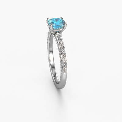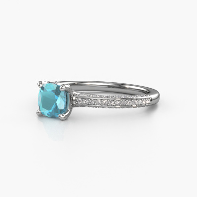 Nous avons donné le nom Elenore cus à la bague de fiançailles mentionnée ci-dessous. Ce type de bague de fiançailles est appelé une bague de fiançailles solitaire pavé car elle ne comporte qu’une seule pierre centrale et les tiges de la bague de fiançailles ont également une finition pleine. Cette bague de fiançailles est forgée en or et comporte un topaze bleue coussin de 5.5 mm. Des diamants synthétiques sont sertis dans les épaules latérales de l’anneau. Chaque bijou est fabriquée par une équipe d'orfèvres et de designers motivés. Cela permettra à cette pièce unique d'attirer tous les regards.. Cette bague de fiançailles solitaire pavé forgée en platine contemporains a un beau topaze bleue coussin en guise de pierre centrale, avec plus de diamants synthétiques dans l’anneau pour accentuer encore plus l’effet de la pierre centrale. Le sertissage à griffes autour du topaze bleue étant ouvert, le topaze bleue capte la lumière de tous les côtés et brille de manière optimale. Ci-dessus, vous pouvez voir comment notre orfèvre a travaillé la bague de fiançailles dans les moindres détails. de telle sorte que le topaze bleue élevé puisse véritablement attirer tous les regards. Quelle belle bague de fiançailles à offre lors de votre demande en mariage à l'amour de votre vie, à votre centre rayonnant ! Nos orfèvres ne fabriqueront votre bague de fiançailles qu'une fois que vous l'aurez commandée. Nous ne faisons pas de stock. L'avantage de cela est que nous n'avons pas à inclure les frais de stockage dans nos prix, et nous pouvons donc vous offrir des bijoux à un prix très bas.Avez-vous déjà des bague de fiançailles spécifiques en tête ? Une bague de fiançailles que vous avez vu quelque part. N'hésitez pas à nous faire part de vos souhaits et nous transformerons votre design en des bague de fiançailles uniques. Vous êtes en mesure de suivre l'évolution de la conception de vos bague de fiançailles car nous utilisons des dessins en 3D. Cela vous donnera un aperçu réaliste de votre design. Nous vous enverrons volontiers une offre sans engagement basée sur un rapport qualité / prix juste. Elle va vous étonner.Pour vous faciliter la tâche, vous pouvez facilement nous retourner tout bijou commandé dans les 30 jours suivant la livraison.