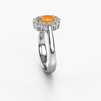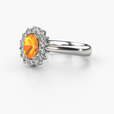 La bague de fiançailles mentionnée ci-dessus a pour nom Margien 1. Nous appelons ce type de bague de fiançailles Lady Diana, dans laquelle des petites pierres précieuses sont placées autour de la pierre centrale dans un sertissage ouvert. Cette bague en or 14 Carat a un citrine ovale de 7x5 mm en tant que pierre centrale qui est entourée par de petits diamants. Vous la connaissez, cette belle bague de fiançailles en or blanc Lady Diana et traditionnelles... la plus connue et dont on a le plus parlé dans le monde, pour la plus grande personne dans votre vie ! Ce qui est spécial au sujet de cette bague de fiançailles Lady Diana est le magnifique citrine serti au centre. Les petites pierres précieuses sont serties sur la bague de fiançailles pour renforcer grâce à l'éclat du citrine comme pierre centrale, ce qui vous fait penser que vous portez un grand bijou. Avec conception de cette bague de fiançailles style Lady Di, cet effet est encore plus renforcé. La largeur est que nos orfèvres travaillent cette bague de fiançailles pour la rendre aussi unique que vous. Puisque nous forgeons la bague de fiançailles Lady Diana à la main dans notre propre atelier, nous pouvons la personnaliser exactement comme vous l'avez à l'esprit. Ce bijou est fabriquées spécialement pour vous par nos maîtres orfèvres dans notre propre atelier. Nos orfèvres ne fabriqueront votre bague de fiançailles qu'une fois que vous l'aurez commandée. Nous ne faisons pas de stock. L'avantage de cela est que nous n'avons pas à inclure les frais de stockage dans nos prix, et nous pouvons donc vous offrir des bijoux à un prix très bas. Notre équipe de designers talentueux et passionnés ajoute chaque jour de nouveaux modèles bague de fiançailles à notre collection en ligne. Notre objectif est de pouvoir vous offrir une grande variété de bijoux. N'hésitez pas à demander un devis si vous avez des souhaits spécifiques pour votre bague de fiançailles. Nous garantissons de vous faire une offre que vous ne pourrez pas refuser. Pour vous faciliter la tâche, vous pouvez facilement nous retourner tout bijou commandé dans les 30 jours suivant la livraison.