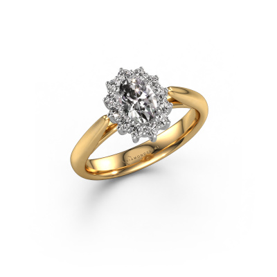 La bague de fiançailles mentionnée ci-dessus a pour nom Margien 1. Nous appelons ce type de bague de fiançailles Lady Diana, dans laquelle des petites pierres précieuses sont placées autour de la pierre centrale dans un sertissage ouvert. Cette bague en or 14 Carat a un diamant ovale de 0.60 crt en tant que pierre centrale qui est entourée par de petits diamants. Vous la connaissez, cette belle bague de fiançailles en or jaune Lady Diana et traditionnelles... la plus connue et dont on a le plus parlé dans le monde, pour la plus grande personne dans votre vie ! Ce qui est spécial au sujet de cette bague de fiançailles Lady Diana est le magnifique diamant serti au centre. Les petites pierres précieuses sont serties sur la bague de fiançailles pour renforcer grâce à l'éclat du diamant comme pierre centrale, ce qui vous fait penser que vous portez un grand bijou. Avec conception de cette bague de fiançailles style Lady Di, cet effet est encore plus renforcé. La largeur est que nos orfèvres travaillent cette bague de fiançailles pour la rendre aussi unique que vous. Puisque nous forgeons la bague de fiançailles Lady Diana à la main dans notre propre atelier, nous pouvons la personnaliser exactement comme vous l'avez à l'esprit. Ce bijou est fabriquées spécialement pour vous par nos maîtres orfèvres dans notre propre atelier. Nos orfèvres ne fabriqueront votre bague de fiançailles qu'une fois que vous l'aurez commandée. Nous ne faisons pas de stock. L'avantage de cela est que nous n'avons pas à inclure les frais de stockage dans nos prix, et nous pouvons donc vous offrir des bijoux à un prix très bas. Notre équipe de designers talentueux et passionnés ajoute chaque jour de nouveaux modèles bague de fiançailles à notre collection en ligne. Notre objectif est de pouvoir vous offrir une grande variété de bijoux. N'hésitez pas à demander un devis si vous avez des souhaits spécifiques pour votre bague de fiançailles. Nous garantissons de vous faire une offre que vous ne pourrez pas refuser. Pour vous faciliter la tâche, vous pouvez facilement nous retourner tout bijou commandé dans les 30 jours suivant la livraison.