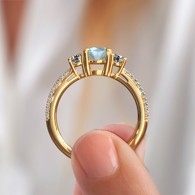 Cette bague de fiançailles porte le nom Marielle RND. Cette bague de fiançailles de bon goût est forgée en or 14 Carat et est sertie d’un aigue-marine de 6 mm. Cette bague de fiançailles trois pierres et forgée en or jaune unique est un pur travail d’art ! Tous les petits détails ont été fabriqués avec beaucoup de patience et de passion par notre orfèvre. Ce métier nécessite un œil expert et une main habile pour assembler cette bague de fiançailles avec la plus grande précision. Et ce travail est précisément ce qui enthousiasme nos orfèvres ! Les plus beaux aigues-marines sont sertis de manière large, de telle sorte qu'ils puissent rendre un effet encore meilleurs. Cela donne donc une allure supplémentaire à la bague de fiançailles. La bague de fiançailles est unique en raison de sa pierre précieuse naturelle, que nous avons spécialement sélectionnée pour cette bague. De plus, vous pouvez choisir vous-même la composition du métal précieux de votre bague. Vous aurez donc créé une bague de fiançailles unique pour la femmes la plus unique de votre vie ! Ce bijou est faite avec passion et amour par l'un de nos maîtres orfèvres.En combinant les dernières techniques modernes, associées à une fabrication ancienne, nous sommes en mesure de fabriquer nos bagues de fiançailles dans notre propre studio. Chaque bijou est fabriqué sur commande. Ceci est avantageux car nous sommes en mesure de vous proposer un prix que vous ne trouverez nulle part ailleurs.Notre équipe de designers talentueux et passionnés ajoute chaque jour de nouveaux modèles bague de fiançailles à notre collection en ligne. Notre objectif est de pouvoir vous offrir une grande variété de bijoux. N'hésitez pas à demander un devis si vous avez des souhaits spécifiques pour votre bague de fiançailles. Nous garantissons de vous faire une offre que vous ne pourrez pas refuser.Pour vous faciliter la tâche, vous pouvez facilement nous retourner tout bijou commandé dans les 30 jours suivant la livraison.