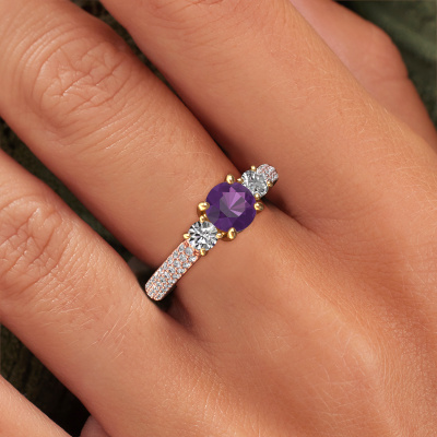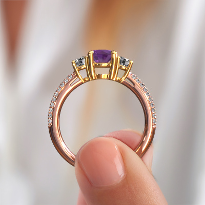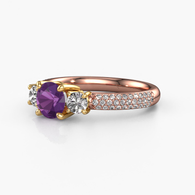 Cette bague de fiançailles porte le nom Marielle RND. Cette bague de fiançailles de bon goût est forgée en or 14 Carat et est sertie d’un améthyste de 6 mm. Cette bague de fiançailles trois pierres et forgée en or rose unique est un pur travail d’art ! Tous les petits détails ont été fabriqués avec beaucoup de patience et de passion par notre orfèvre. Ce métier nécessite un œil expert et une main habile pour assembler cette bague de fiançailles avec la plus grande précision. Et ce travail est précisément ce qui enthousiasme nos orfèvres ! Les plus beaux améthystes sont sertis de manière large, de telle sorte qu'ils puissent rendre un effet encore meilleurs. Cela donne donc une allure supplémentaire à la bague de fiançailles. La bague de fiançailles est unique en raison de sa pierre précieuse naturelle, que nous avons spécialement sélectionnée pour cette bague. De plus, vous pouvez choisir vous-même la composition du métal précieux de votre bague. Vous aurez donc créé une bague de fiançailles unique pour la femmes la plus unique de votre vie ! Ce bijou est faite avec passion et amour par l'un de nos maîtres orfèvres.En combinant les dernières techniques modernes, associées à une fabrication ancienne, nous sommes en mesure de fabriquer nos bagues de fiançailles dans notre propre studio. Chaque bijou est fabriqué sur commande. Ceci est avantageux car nous sommes en mesure de vous proposer un prix que vous ne trouverez nulle part ailleurs.Notre équipe de designers talentueux et passionnés ajoute chaque jour de nouveaux modèles bague de fiançailles à notre collection en ligne. Notre objectif est de pouvoir vous offrir une grande variété de bijoux. N'hésitez pas à demander un devis si vous avez des souhaits spécifiques pour votre bague de fiançailles. Nous garantissons de vous faire une offre que vous ne pourrez pas refuser.Pour vous faciliter la tâche, vous pouvez facilement nous retourner tout bijou commandé dans les 30 jours suivant la livraison.