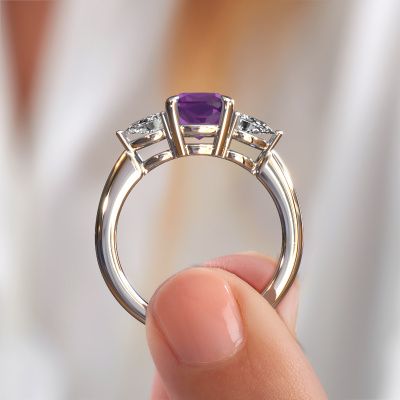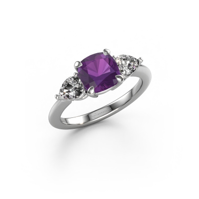 Cette bague de fiançailles porte le nom Chanou CUS. Cette bague de fiançailles belles est forgée en or et est sertie d’un améthyste de 7 mm. Cette bague de fiançailles trois pierres et forgée en platine unique est un pur travail d’art ! Tous les petits détails ont été fabriqués avec beaucoup de patience et de passion par notre orfèvre. Ce métier nécessite un œil expert et une main habile pour assembler cette bague de fiançailles avec la plus grande précision. Et ce travail est précisément ce qui enthousiasme nos orfèvres ! Les plus beaux améthystes sont sertis de manière large, de telle sorte qu'ils puissent rendre un effet encore meilleurs. Cela donne donc une allure supplémentaire à la bague de fiançailles. La bague de fiançailles est unique en raison de sa pierre précieuse naturelle, que nous avons spécialement sélectionnée pour cette bague. De plus, vous pouvez choisir vous-même la composition du métal précieux de votre bague. Vous aurez donc créé une bague de fiançailles unique pour la femmes la plus unique de votre vie ! Ce bijou est fabriquées avec passion et amour par l'un de nos maîtres orfèvres.Nos orfèvres ne fabriqueront votre bague de fiançailles qu'une fois que vous l'aurez commandée. Nous ne faisons pas de stock. L'avantage de cela est que nous n'avons pas à inclure les frais de stockage dans nos prix, et nous pouvons donc vous offrir des bijoux à un prix très bas.Notre équipe de designers talentueux et passionnés ajoute chaque jour de nouveaux modèles bague de fiançailles à notre collection en ligne. Notre objectif est de pouvoir vous offrir une grande variété de bijoux. N'hésitez pas à demander un devis si vous avez des souhaits spécifiques pour votre bague de fiançailles. Nous garantissons de vous faire une offre que vous ne pourrez pas refuser.Pour vous faciliter la tâche, vous pouvez facilement nous retourner tout bijou commandé dans les 30 jours suivant la livraison.