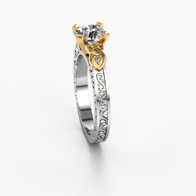 Nous avons donné le nom Gillian à cette bague de fiançailles. Cette bague de fiançailles ajour forgée en or 14 Carat est sertie d’un diamant de 1.02 crt. Votre petite amie a-t-elle un faible pour le vintage ? Vous pouvez donc être sûr que cette bague de fiançailles forgée en or blanc conviendra à son style ! Un nouveau modèle basé sur des motifs vintage. Un peu de rêve, un beau design, surtout si vous l’ajustez encore plus à votre goût. De magnifiques diamants ont été sertis sur cette bague de fiançailles trois pierres vintage. Comme vous pouvez le constater, vous pouvez choisir vous-même une pierre précieuse qui convient à votre petite amie. Chaque pierre précieuse est soigneusement sélectionnée par nos commerçants du monde entier. Notre orfèvre ne veut travailler que les plus belles pierres précieuses sur votre bijou. Après tout, c'est la couronne de son travail ! Chaque bijou est faite spécialement pour vous, avec une attention particulière portée aux détails et au design.Saviez-vous que nous offrons la garantie du meilleur prix pour votre bague de fiançailles? Cela est possible car tous nos bijoux sont fabriqués à la main dans notre propre atelier. Nous n'avons pas de frais de stocks qui sont coûteux, et nous fabriquons votre bague uniquement une fois que vous l'avez commandée. Grâce au fait que nous ayons toute la production du bijou en main, nous pouvons vous informer sur toutes les caractéristiques de cette bague de fiançailles. C’est précisément parce que l’achat d’une bague en ligne est une expérience excitante que nous comprenons qu’il est plus confortable pour vous de connaître toutes les caractéristiques de votre bague.Notre équipe ajoute quotidiennement de nouveaux modèles à notre collection en ligne. Nos designers et orfèvres travaillent ensemble pour créer le meilleur design. Nous nous efforçons d'offrir une collection diversifiée de bijoux. Peut-être avez-vous déjà en tête un bijou en particulier ? Un bijou que vous avez trouvé quelque part. Veuillez nous contacter pour une consultation gratuite. Nous vous ferons une offre, basée sur un rapport qualité / prix juste, qui vous déconcertera.Pour vous faciliter la tâche, vous pouvez facilement nous retourner tout bijou commandé dans les 30 jours suivant la livraison.