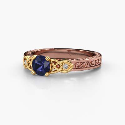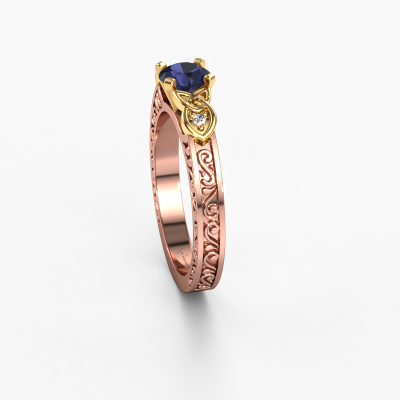 Nous avons donné le nom Gillian à cette bague de fiançailles. Cette bague de fiançailles ajour forgée en or 14 Carat est sertie d’un saphir de 5 mm. Votre petite amie a-t-elle un faible pour le vintage ? Vous pouvez donc être sûr que cette bague de fiançailles forgée en or rose conviendra à son style ! Un nouveau modèle basé sur des motifs vintage. Un peu de rêve, un beau design, surtout si vous l’ajustez encore plus à votre goût. De magnifiques saphir ont été sertis sur cette bague de fiançailles trois pierres vintage. Comme vous pouvez le constater, vous pouvez choisir vous-même une pierre précieuse qui convient à votre petite amie. Chaque pierre précieuse est soigneusement sélectionnée par nos commerçants du monde entier. Notre orfèvre ne veut travailler que les plus belles pierres précieuses sur votre bijou. Après tout, c'est la couronne de son travail ! Chaque bijou est faite spécialement pour vous, avec une attention particulière portée aux détails et au design.Saviez-vous que nous offrons la garantie du meilleur prix pour votre bague de fiançailles? Cela est possible car tous nos bijoux sont fabriqués à la main dans notre propre atelier. Nous n'avons pas de frais de stocks qui sont coûteux, et nous fabriquons votre bague uniquement une fois que vous l'avez commandée. Grâce au fait que nous ayons toute la production du bijou en main, nous pouvons vous informer sur toutes les caractéristiques de cette bague de fiançailles. C’est précisément parce que l’achat d’une bague en ligne est une expérience excitante que nous comprenons qu’il est plus confortable pour vous de connaître toutes les caractéristiques de votre bague.Notre équipe ajoute quotidiennement de nouveaux modèles à notre collection en ligne. Nos designers et orfèvres travaillent ensemble pour créer le meilleur design. Nous nous efforçons d'offrir une collection diversifiée de bijoux. Peut-être avez-vous déjà en tête un bijou en particulier ? Un bijou que vous avez trouvé quelque part. Veuillez nous contacter pour une consultation gratuite. Nous vous ferons une offre, basée sur un rapport qualité / prix juste, qui vous déconcertera.Pour vous faciliter la tâche, vous pouvez facilement nous retourner tout bijou commandé dans les 30 jours suivant la livraison.