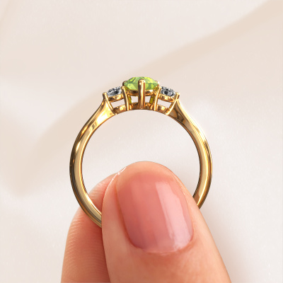 Cette bague de fiançailles spéciales porte le nom Lieselot PER. Cette bague forgée en or 14 Carat est sertie d’un péridot de 7x5 mm. Il y a une personne dans votre vie qui quand elle se présente devant vous, votre cœur bat plus vite, ce qui est vraiment unique pour vous. Et c’est précisément cette personne qui mérite quelque chose de spécial, quelque chose d’unique et qui a été conçu spécialement pour elle. Nous soupçonnons que cette bague de fiançailles s'intègre bien dans cette situation. Tous les détails de cette bague de fiançailles unique forgée en or jaune sont composés, travaillés et polis à la main par notre orfèvre dans l'atelier ci-dessous. Notre objectif est que la conception et la composition de la bague de fiançailles renforcent et rayonnent les beaux péridots. Un travail très précis, qui donne finalement à un résultat magnifique. Et c’est exactement ce que nous voulons, cela nous rend très enthousiastes. L’avantage de notre outil de configuration est que vous pouvez concevoir entièrement vos propres bijoux pour créer votre propre bijou. Cette bague de fiançailles trois pierres est faite à partir de la combinaison de métaux précieux : de l’or avec de l’or jaune, mais vous pouvez également choisir une autre couleur d’or. Chaque bijou est faite avec passion et amour par l'un de nos maîtres orfèvres.Vous avez peut-être remarqué que nos prix sont en moyenne inférieurs de 30% à ceux d'un autre bijoutier. Et ce alors que la qualité de nos bijoux est même plus élevée dans la plupart des cas ! En effet, nos orfèvres fabriquent votre bague de fiançailles directement dans notre propre atelier. Cela signifie que nous n'avons pas à inclure des frais de stocks coûteux et que nous pouvons travailler n'importe quel détail directement sur votre bague de fiançailles.Notre équipe ajoute quotidiennement de nouveaux modèles à notre collection en ligne. Nos designers et orfèvres travaillent ensemble pour créer le meilleur design. Nous nous efforçons d'offrir une collection diversifiée de bijoux. Peut-être avez-vous déjà en tête un bijou en particulier ? Un bijou que vous avez trouvé quelque part. Veuillez nous contacter pour une consultation gratuite. Nous vous ferons une offre, basée sur un rapport qualité / prix juste, qui vous déconcertera.Pour vous faciliter la tâche, vous pouvez facilement nous retourner tout bijou commandé dans les 30 jours suivant la livraison.