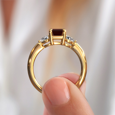 Cette bague de fiançailles de bon goût porte le nom Chanou EME. Cette bague forgée en or 14 Carat est sertie d’un grenat de 7.5x5.5 mm. Il y a une personne dans votre vie qui quand elle se présente devant vous, votre cœur bat plus vite, ce qui est vraiment unique pour vous. Et c’est précisément cette personne qui mérite quelque chose de spécial, quelque chose d’unique et qui a été conçu spécialement pour elle. Nous soupçonnons que cette bague de fiançailles s'intègre bien dans cette situation. Tous les détails de cette bague de fiançailles unique forgée en or jaune sont composés, travaillés et polis à la main par notre orfèvre dans l'atelier ci-dessous. Notre objectif est que la conception et la composition de la bague de fiançailles renforcent et rayonnent les beaux grenats. Un travail très précis, qui donne finalement à un résultat magnifique. Et c’est exactement ce que nous voulons, cela nous rend très enthousiastes. L’avantage de notre outil de configuration est que vous pouvez concevoir entièrement vos propres bijoux pour créer votre propre bijou. Cette bague de fiançailles trois pierres est faite à partir de la combinaison de métaux précieux : de l’or avec de l’or jaune, mais vous pouvez également choisir une autre couleur d’or. Chaque bijou est fabriquées spécialement pour vous par nos maîtres orfèvres dans notre propre atelier.En combinant les dernières techniques modernes, associées à une fabrication ancienne, nous sommes en mesure de fabriquer nos bagues de fiançailles dans notre propre studio. Chaque bijou est fabriqué sur commande. Ceci est avantageux car nous sommes en mesure de vous proposer un prix que vous ne trouverez nulle part ailleurs.Notre équipe de designers talentueux et passionnés ajoute chaque jour de nouveaux modèles bague de fiançailles à notre collection en ligne. Notre objectif est de pouvoir vous offrir une grande variété de bijoux. N'hésitez pas à demander un devis si vous avez des souhaits spécifiques pour votre bague de fiançailles. Nous garantissons de vous faire une offre que vous ne pourrez pas refuser.Pour vous faciliter la tâche, vous pouvez facilement nous retourner tout bijou commandé dans les 30 jours suivant la livraison.