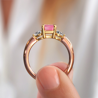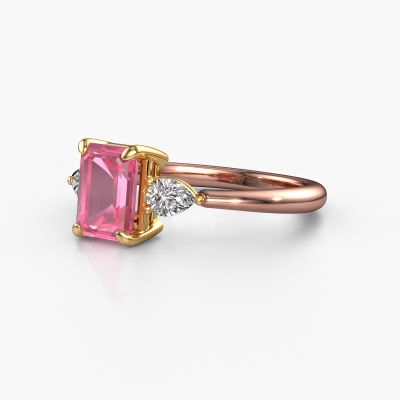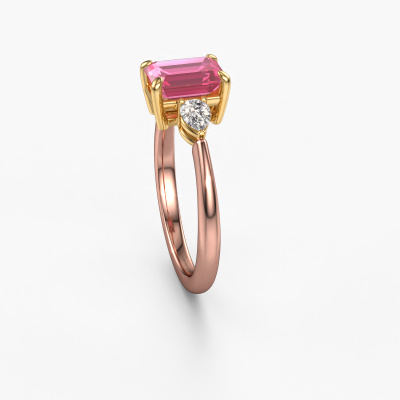 Cette bague de fiançailles de bon goût porte le nom Chanou EME. Cette bague forgée en or 14 Carat est sertie d’un saphir rose de 7.5x5.5 mm. Il y a une personne dans votre vie qui quand elle se présente devant vous, votre cœur bat plus vite, ce qui est vraiment unique pour vous. Et c’est précisément cette personne qui mérite quelque chose de spécial, quelque chose d’unique et qui a été conçu spécialement pour elle. Nous soupçonnons que cette bague de fiançailles s'intègre bien dans cette situation. Tous les détails de cette bague de fiançailles unique forgée en or rose sont composés, travaillés et polis à la main par notre orfèvre dans l'atelier ci-dessous. Notre objectif est que la conception et la composition de la bague de fiançailles renforcent et rayonnent les beaux saphirs roses. Un travail très précis, qui donne finalement à un résultat magnifique. Et c’est exactement ce que nous voulons, cela nous rend très enthousiastes. L’avantage de notre outil de configuration est que vous pouvez concevoir entièrement vos propres bijoux pour créer votre propre bijou. Cette bague de fiançailles trois pierres est faite à partir de la combinaison de métaux précieux : de l’or avec de l’or jaune, mais vous pouvez également choisir une autre couleur d’or. Chaque bijou est fabriquées spécialement pour vous par nos maîtres orfèvres dans notre propre atelier.En combinant les dernières techniques modernes, associées à une fabrication ancienne, nous sommes en mesure de fabriquer nos bagues de fiançailles dans notre propre studio. Chaque bijou est fabriqué sur commande. Ceci est avantageux car nous sommes en mesure de vous proposer un prix que vous ne trouverez nulle part ailleurs.Notre équipe de designers talentueux et passionnés ajoute chaque jour de nouveaux modèles bague de fiançailles à notre collection en ligne. Notre objectif est de pouvoir vous offrir une grande variété de bijoux. N'hésitez pas à demander un devis si vous avez des souhaits spécifiques pour votre bague de fiançailles. Nous garantissons de vous faire une offre que vous ne pourrez pas refuser.Pour vous faciliter la tâche, vous pouvez facilement nous retourner tout bijou commandé dans les 30 jours suivant la livraison.