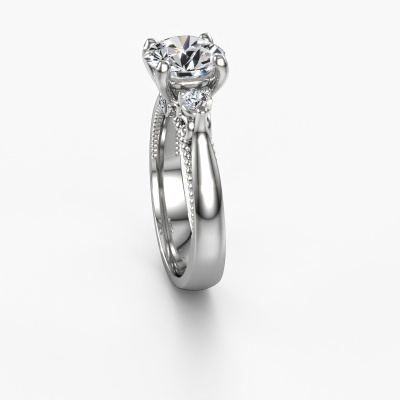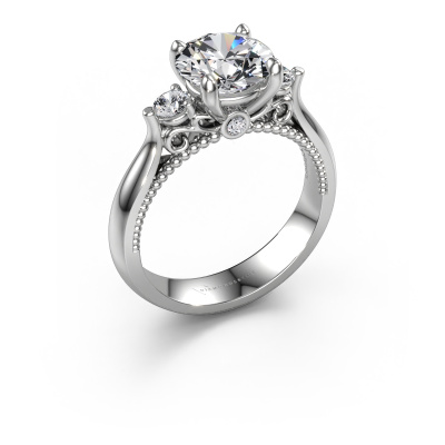 Cette bague de fiançailles porte le nom Tiffani. Cette bague de fiançailles ajour est forgée en or et est sertie d’un diamant de 2.24 crt. Cette bague de fiançailles trois pierres et forgée en platine unique est un pur travail d’art ! Tous les petits détails ont été fabriqués avec beaucoup de patience et de passion par notre orfèvre. Ce métier nécessite un œil expert et une main habile pour assembler cette bague de fiançailles avec la plus grande précision. Et ce travail est précisément ce qui enthousiasme nos orfèvres ! Les plus beaux diamants sont sertis de manière large, de telle sorte qu'ils puissent rendre un effet encore meilleurs. Cela donne donc une allure supplémentaire à la bague de fiançailles. La bague de fiançailles est unique en raison de sa pierre précieuse naturelle, que nous avons spécialement sélectionnée pour cette bague. De plus, vous pouvez choisir vous-même la composition du métal précieux de votre bague. Vous aurez donc créé une bague de fiançailles unique pour la femmes la plus unique de votre vie ! Ce bijou est fabriquée spécialement pour vous par nos maîtres orfèvres dans notre propre atelier.Saviez-vous que nous offrons la garantie du meilleur prix pour votre bague de fiançailles? Cela est possible car tous nos bijoux sont fabriqués à la main dans notre propre atelier. Nous n'avons pas de frais de stocks qui sont coûteux, et nous fabriquons votre bague uniquement une fois que vous l'avez commandée. Grâce au fait que nous ayons toute la production du bijou en main, nous pouvons vous informer sur toutes les caractéristiques de cette bague de fiançailles. C’est précisément parce que l’achat d’une bague en ligne est une expérience excitante que nous comprenons qu’il est plus confortable pour vous de connaître toutes les caractéristiques de votre bague.Avez-vous déjà des bague de fiançailles spécifiques en tête ? Une bague de fiançailles que vous avez vu quelque part. N'hésitez pas à nous faire part de vos souhaits et nous transformerons votre design en des bague de fiançailles uniques. Vous êtes en mesure de suivre l'évolution de la conception de vos bague de fiançailles car nous utilisons des dessins en 3D. Cela vous donnera un aperçu réaliste de votre design. Nous vous enverrons volontiers une offre sans engagement basée sur un rapport qualité / prix juste. Elle va vous étonner.Pour vous faciliter la tâche, vous pouvez facilement nous retourner tout bijou commandé dans les 30 jours suivant la livraison.