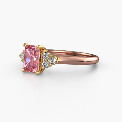 Cette bague de fiançailles porte le nom Felipa RAD. Cette bague de fiançailles gracieuses est forgée en or 14 Carat et est sertie d’un diamant synthétique roze de 7x5 mm. Cette bague de fiançailles trois pierres et forgée en or rose unique est un pur travail d’art ! Tous les petits détails ont été fabriqués avec beaucoup de patience et de passion par notre orfèvre. Ce métier nécessite un œil expert et une main habile pour assembler cette bague de fiançailles avec la plus grande précision. Et ce travail est précisément ce qui enthousiasme nos orfèvres ! Les plus beaux diamant synthétique roze sont sertis de manière large, de telle sorte qu'ils puissent rendre un effet encore meilleurs. Cela donne donc une allure supplémentaire à la bague de fiançailles. La bague de fiançailles est unique en raison de sa pierre précieuse naturelle, que nous avons spécialement sélectionnée pour cette bague. De plus, vous pouvez choisir vous-même la composition du métal précieux de votre bague. Vous aurez donc créé une bague de fiançailles unique pour la femmes la plus unique de votre vie ! Ce bijou est fabriquées spécialement pour vous par nos maîtres orfèvres dans notre propre atelier.Saviez-vous que nous offrons la garantie du meilleur prix pour votre bague de fiançailles? Cela est possible car tous nos bijoux sont fabriqués à la main dans notre propre atelier. Nous n'avons pas de frais de stocks qui sont coûteux, et nous fabriquons votre bague uniquement une fois que vous l'avez commandée. Grâce au fait que nous ayons toute la production du bijou en main, nous pouvons vous informer sur toutes les caractéristiques de cette bague de fiançailles. C’est précisément parce que l’achat d’une bague en ligne est une expérience excitante que nous comprenons qu’il est plus confortable pour vous de connaître toutes les caractéristiques de votre bague.Notre équipe de designers talentueux et passionnés ajoute chaque jour de nouveaux modèles bague de fiançailles à notre collection en ligne. Notre objectif est de pouvoir vous offrir une grande variété de bijoux. N'hésitez pas à demander un devis si vous avez des souhaits spécifiques pour votre bague de fiançailles. Nous garantissons de vous faire une offre que vous ne pourrez pas refuser.Pour vous faciliter la tâche, vous pouvez facilement nous retourner tout bijou commandé dans les 30 jours suivant la livraison.