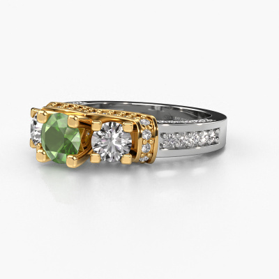 Cette bague de fiançailles porte le nom Phileine. Cette bague de fiançailles osés est forgée en or 14 Carat et est sertie d’un vert tourmaline de 5 mm. Cette bague de fiançailles trois pierres et forgée en or blanc unique est un pur travail d’art ! Tous les petits détails ont été fabriqués avec beaucoup de patience et de passion par notre orfèvre. Ce métier nécessite un œil expert et une main habile pour assembler cette bague de fiançailles avec la plus grande précision. Et ce travail est précisément ce qui enthousiasme nos orfèvres ! Les plus beaux vert tourmaline sont sertis de manière large, de telle sorte qu'ils puissent rendre un effet encore meilleurs. Cela donne donc une allure supplémentaire à la bague de fiançailles. La bague de fiançailles est unique en raison de sa pierre précieuse naturelle, que nous avons spécialement sélectionnée pour cette bague. De plus, vous pouvez choisir vous-même la composition du métal précieux de votre bague. Vous aurez donc créé une bague de fiançailles unique pour la femmes la plus unique de votre vie ! Ce bijou est faite avec passion et amour par l'un de nos maîtres orfèvres.Saviez-vous que nous offrons la garantie du meilleur prix pour votre bague de fiançailles? Cela est possible car tous nos bijoux sont fabriqués à la main dans notre propre atelier. Nous n'avons pas de frais de stocks qui sont coûteux, et nous fabriquons votre bague uniquement une fois que vous l'avez commandée. Grâce au fait que nous ayons toute la production du bijou en main, nous pouvons vous informer sur toutes les caractéristiques de cette bague de fiançailles. C’est précisément parce que l’achat d’une bague en ligne est une expérience excitante que nous comprenons qu’il est plus confortable pour vous de connaître toutes les caractéristiques de votre bague.Notre équipe ajoute quotidiennement de nouveaux modèles à notre collection en ligne. Nos designers et orfèvres travaillent ensemble pour créer le meilleur design. Nous nous efforçons d'offrir une collection diversifiée de bijoux. Peut-être avez-vous déjà en tête un bijou en particulier ? Un bijou que vous avez trouvé quelque part. Veuillez nous contacter pour une consultation gratuite. Nous vous ferons une offre, basée sur un rapport qualité / prix juste, qui vous déconcertera.Pour vous faciliter la tâche, vous pouvez facilement nous retourner tout bijou commandé dans les 30 jours suivant la livraison.