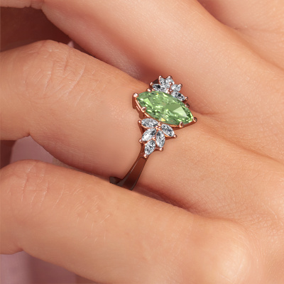 Le nom de cette bague de fiançailles est Fiona MRQ. Elle est forgée en or 14 Carat et est sertie d'un diamants synthétiques vert de 10x5 mm. Êtes-vous à la recherche d'une bague de fiançailles forgée en or rose uniques que vous pourrez adapter à votre goût ? Un diamants synthétiques vert est utilisé dans cette bague de fiançailles uniques. Celui-ci a été soigneusement sélectionné pour créer le plus bel effet. Notre orfèvre fabrique votre bague de fiançailles dans notre propre atelier et sertit le diamants synthétiques vert dans l'anneau avec une précision extrême. Donc, la bague est travaillée et polie jusqu'à ce que le résultat soit visible : la bague de fiançailles parfaite pour l'amour de votre vie ! Ce bijou est fabriquée spécialement pour vous par nos maîtres orfèvres dans notre propre atelier.En combinant les dernières techniques modernes, associées à une fabrication ancienne, nous sommes en mesure de fabriquer nos bagues de fiançailles dans notre propre studio. Chaque bijou est fabriqué sur commande. Ceci est avantageux car nous sommes en mesure de vous proposer un prix que vous ne trouverez nulle part ailleurs.Notre équipe de designers talentueux et passionnés ajoute chaque jour de nouveaux modèles bague de fiançailles à notre collection en ligne. Notre objectif est de pouvoir vous offrir une grande variété de bijoux. N'hésitez pas à demander un devis si vous avez des souhaits spécifiques pour votre bague de fiançailles. Nous garantissons de vous faire une offre que vous ne pourrez pas refuser.Pour vous faciliter la tâche, vous pouvez facilement nous retourner tout bijou commandé dans les 30 jours suivant la livraison.