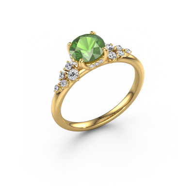 Le nom de cette bague de fiançailles est Emma RND. Elle est forgée en or 14 Carat et est sertie d'un vert tourmaline de 6.5 mm. Comment décririez-vous le style de l'amour de votre vie ? Est-ce qu'elle aime quelque chose qui est juste un peu plus différent que d'habitude ? Cette bague de fiançailles forgée en or jaune avec raffinées est une superbe bague que vous pouvez personnaliser à votre guise. Un vert tourmaline est utilisé dans cette bague de fiançailles fantaisie. Ces vert tourmaline ont été sélectionnés avec soin, car nous pensons que sur votre bague de fiançailles, seule les plus belle pierre précieuses peuvent y briller, n'est-ce pas ? Ce bijou est fabriquée spécialement pour vous par nos maîtres orfèvres dans notre propre atelier.Qu'y a-t-il dorénavant de plus beau qu'une bague de fiançailles fantaisie conçue par vous-même et fabriquée à la main par nous. Vous pouvez personnaliser chaque modèle avec les différents métaux précieux et pierres précieuses. De cette façon, vous pourrez créer une bague de fiançailles unique. Cette bague peut être mise en place de plusieurs façons. Bien sûr, vous pouvez toujours nous contacter et nous serons heureux de vous aider à composer votre bague de fiançailles fantaisie Emma RND. Vous aimez le design, mais vous souhaitez tout de même quelque chose qui vous convienne plus, ou bien vous souhaitez une pierre précieuse dans les bijoux que vous ne pouvez pas choisir sur notre site, contactez-nous et nous vous aiderons. Avez-vous déjà des bague de fiançailles spécifiques en tête ? Une bague de fiançailles que vous avez vu quelque part. N'hésitez pas à nous faire part de vos souhaits et nous transformerons votre design en des bague de fiançailles uniques. Vous êtes en mesure de suivre l'évolution de la conception de vos bague de fiançailles car nous utilisons des dessins en 3D. Cela vous donnera un aperçu réaliste de votre design. Nous vous enverrons volontiers une offre sans engagement basée sur un rapport qualité / prix juste. Elle va vous étonner.Pour vous faciliter la tâche, vous pouvez facilement nous retourner tout bijou commandé dans les 30 jours suivant la livraison.