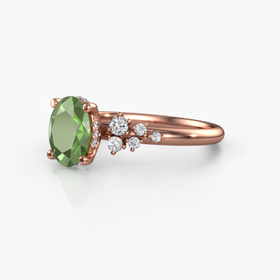 Le nom de cette bague de fiançailles est Emma OVL. Elle est forgée en or 14 Carat et est sertie d'un vert tourmaline de 8x6 mm. Comment décririez-vous le style de l'amour de votre vie ? Est-ce qu'elle aime quelque chose qui est juste un peu plus différent que d'habitude ? Cette bague de fiançailles forgée en or rose avec sublimes est une superbe bague que vous pouvez personnaliser à votre guise. Un vert tourmaline est utilisé dans cette bague de fiançailles fantaisie. Ces vert tourmaline ont été sélectionnés avec soin, car nous pensons que sur votre bague de fiançailles, seule les plus belle pierre précieuses peuvent y briller, n'est-ce pas ? Ce bijou est fabriquée par une équipe d'orfèvres et de designers motivés. Cela permettra à cette pièce unique d'attirer tous les regards.En combinant les dernières techniques modernes, associées à une fabrication ancienne, nous sommes en mesure de fabriquer nos bagues de fiançailles dans notre propre studio. Chaque bijou est fabriqué sur commande. Ceci est avantageux car nous sommes en mesure de vous proposer un prix que vous ne trouverez nulle part ailleurs. Notre équipe ajoute quotidiennement de nouveaux modèles à notre collection en ligne. Nos designers et orfèvres travaillent ensemble pour créer le meilleur design. Nous nous efforçons d'offrir une collection diversifiée de bijoux. Peut-être avez-vous déjà en tête un bijou en particulier ? Un bijou que vous avez trouvé quelque part. Veuillez nous contacter pour une consultation gratuite. Nous vous ferons une offre, basée sur un rapport qualité / prix juste, qui vous déconcertera.Pour vous faciliter la tâche, vous pouvez facilement nous retourner tout bijou commandé dans les 30 jours suivant la livraison.