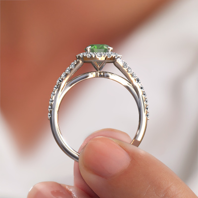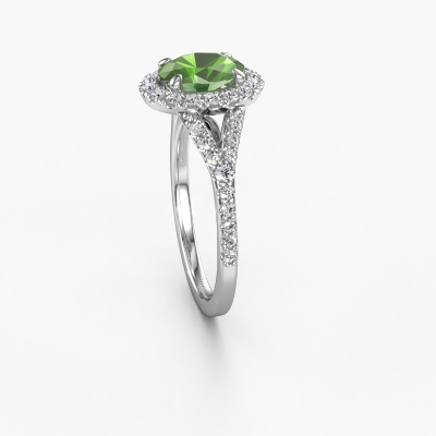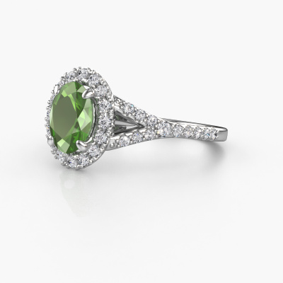 La bague de fiançailles mentionnée ci-dessus a été nommée Kimber OVL. Ce type de bague de fiançailles est appelé une bague de fiançailles solitaire pavé car elle ne comporte qu’une seule pierre centrale et les tiges de la bague de fiançailles sont également pleins. La bague de fiançailles est faite dans une combinaison d'or et d’platine et a un vert tourmaline ovale d’une de 8x6 mm, et des diamants synthétiques sont sertis sur les épaules de l’anneau. Chaque bijou est faite avec passion et amour par l'un de nos maîtres orfèvres. Cette bague de fiançailles solitaire pavé forgée en platine exclusives a un beau vert tourmaline ovale comme pierre centrale, avec plus de vert tourmaline sertis dans la bague pour accentuer encore plus la présence de la pierre centrale. Le sertissage à griffes autour du vert tourmaline étant ouvert, le vert tourmaline capte la lumière de tous les côtés et brille de manière optimale. Ci-dessus, vous pouvez voir comment notre orfèvre travaille la bague de fiançailles avec une extrême précision dans les moindres détails, de telle sorte que le vert tourmaline élevé puisse attirer tous les regards. Quelle belle bague de fiançailles à offrir lors de votre demande en mariage à l'amour de votre vie, à votre centre rayonnant ! En combinant les dernières techniques modernes, associées à une fabrication ancienne, nous sommes en mesure de fabriquer nos bagues de fiançailles dans notre propre studio. Chaque bijou est fabriqué sur commande. Ceci est avantageux car nous sommes en mesure de vous proposer un prix que vous ne trouverez nulle part ailleurs.Notre équipe ajoute quotidiennement de nouveaux modèles à notre collection en ligne. Nos designers et orfèvres travaillent ensemble pour créer le meilleur design. Nous nous efforçons d'offrir une collection diversifiée de bijoux. Peut-être avez-vous déjà en tête un bijou en particulier ? Un bijou que vous avez trouvé quelque part. Veuillez nous contacter pour une consultation gratuite. Nous vous ferons une offre, basée sur un rapport qualité / prix juste, qui vous déconcertera.Pour vous faciliter la tâche, vous pouvez facilement nous retourner tout bijou commandé dans les 30 jours suivant la livraison.