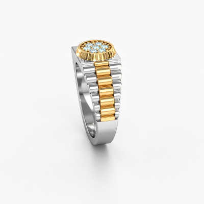 Tout le monde connaît le design de cette marque horlogère bien connue. Avec ses maillons de deux couleurs d’or, cette massives bague Nout forgée en or blanc 14 Carat, convient à l’homme exclusives et accompli. Un homme qui veut faire une déclaration avec une bague pour homme frappante sertie d’un aigue-marine de 2 mm. Montrez qui vous êtes ! Nos orfèvres fabriqueront votre bague pour homme sur mesure avec beaucoup de passion et de soin et ce selon vos souhaits. La bague pour homme en or blanc présentée ici peut être ajustée à votre convenance avec le configurateur. Si vous avez certaines idées que vous ne pouvez pas appliquer avec le configurateur, vous pouvez toujours les communiquer à nos créateurs de bijoux. Vous pouvez bien sûr toujours nous poser des questions.De nouveaux modèles de bijoux sont ajoutés à notre collection en ligne quotidiennement. Notre équipe de designers passionnés s'efforce de créer des designs extraordinaires et variés. Avez-vous vu une bague qui vous plait ? N'hésitez pas à nous contacter. Grâce à un bon rapport qualité / prix, nous vous ferons une offre que vous ne pourrez pas refuser !En utilisant nos techniques modernes, nous sommes en mesure de concevoir et de personnaliser les bijoux de la plus haute qualité avec le plus grand soin pour vous. Nos bagues ont toujours un prix inférieur de 30% à celles des autres bijoutiers. Nous fabriquons des bagues à la commande afin de ne pas avoir à garder un stock important. Si vous avez un certain budget, nous serons ravis de vous conseiller tout en le respectant.Pour vous faciliter la tâche, vous pouvez facilement nous retourner tout bijou commandé dans les 30 jours suivant la livraison.