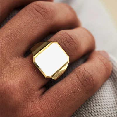 La massives chevalière Lars 4 light ci-dessus est sertie d'un émail blanc octogone et a toute une tradition. La chevalière était traditionnellement transmise de père en fils. Avec cette massives chevalière forgée en or jaune, vous pouvez donc créez votre propre tradition. Nous aimerions également vous proposer d’intégrer une gravure, telle qu'un monogramme ou une gravure d'écusson familial. Trouvez plus d'information et les possibilités de gravures dans notre base de connaissances. Vous trouverez les différentes catégories dans la base de connaissances au bas de cette page. Votre tradition commence ici, avec la chevalière forgée en or jaune Lars 4 light. Nos orfèvres fabriqueront votre chevalière sur mesure avec beaucoup de passion et de soin et ce selon vos souhaits. La chevalière en or jaune présentée ici peut être ajustée à votre convenance avec le configurateur. Si vous avez certaines idées que vous ne pouvez pas appliquer avec le configurateur, vous pouvez toujours les communiquer à nos créateurs de bijoux. Vous pouvez bien sûr toujours nous poser des questions.Notre équipe de designers talentueux et passionnés ajoute chaque jour de nouveaux modèles bagues à notre collection en ligne. Notre objectif est de pouvoir vous offrir une grande variété de bijoux. N'hésitez pas à demander un devis si vous avez des souhaits spécifiques pour votre bague. Nous garantissons de vous faire une offre que vous ne pourrez pas refuser.Devez-vous respecter un certain budget ? N'hésitez pas à nous contacter, nous serons heureux de vous conseiller sur toutes les possibilités. Dans tous les cas, nous offrons toutes les bagues à un prix que vous ne trouverez nulle part ailleurs, car nous ne fabriquerons la bague uniquement lorsque vous la commanderez. Cela nous permet de vous donner la garantie du meilleur prix.Pour vous faciliter la tâche, vous pouvez facilement nous retourner tout bijou commandé dans les 30 jours suivant la livraison.