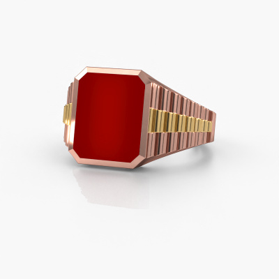 Tout le monde connaît le design de cette marque horlogère bien connue. Avec ses maillons de deux couleurs d’or, cette plate bague Brent 2 forgée en or rose 14 Carat, convient à l’homme exclusives et accompli. Un homme qui veut faire une déclaration avec une chevalière frappante sertie d’un cornaline de 12x10 mm. Montrez qui vous êtes ! Votre chevalière personnelle spéciales Brent 2 que vous vous créez est fabriquée avec amour et passion par nos orfèvres. Préféreriez-vous une option autre que la chevalière en or rose présentée ici ? Vous avez alors diverses options possibles via le configurateur. Si vous n'êtes pas complètement sûr(e), nous serons ravis de vous conseiller !