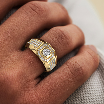 Vous recherchez une bague pour homme modernes forgée en or jaune, car elle vous permettra de vous démarquer ? Dans ce cas, notre bague pour homme forgée en or jaune avec un diamant ronds Pavan est la bague parfaite pour vous. Vous voyez ici la bague forgée en or, et celle-ci peut être aussi entièrement adaptée à vos souhaits. Montrez ce que vous valez avec la bague forgée en or jaune Pavan sertie d’un diamants, la bague d’un homme ambitieux. La royaux bague pour homme Pavan présentée ici peut être personnalisée selon vos souhaits. Les possibilités offertes par notre configurateur sont très étendues, mais si vous souhaitez ajuster quelque chose à votre bague pour homme personnelle qui n'est pas proposé en option, vous pouvez toujours nous contacter.