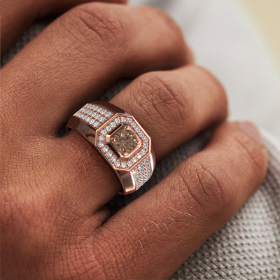 Vous recherchez une bague pour homme modernes forgée en or rose, car elle vous permettra de vous démarquer ? Dans ce cas, notre bague pour homme forgée en or rose avec un diamant brun ronds Pavan est la bague parfaite pour vous. Vous voyez ici la bague forgée en or, et celle-ci peut être aussi entièrement adaptée à vos souhaits. Montrez ce que vous valez avec la bague forgée en or rose Pavan sertie d’un diamants bruns, la bague d’un homme ambitieux. La royaux bague pour homme Pavan présentée ici peut être personnalisée selon vos souhaits. Les possibilités offertes par notre configurateur sont très étendues, mais si vous souhaitez ajuster quelque chose à votre bague pour homme personnelle qui n'est pas proposé en option, vous pouvez toujours nous contacter.