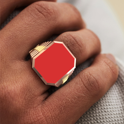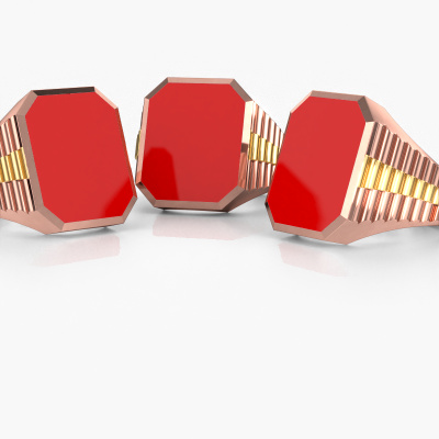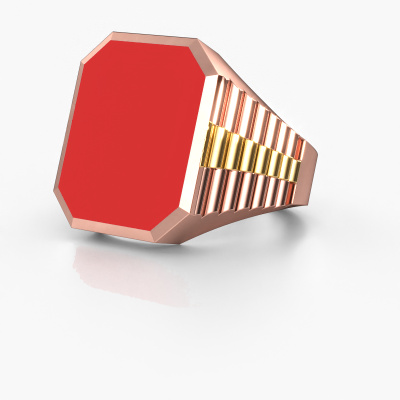 Tout le monde connaît le design de cette marque horlogère bien connue. Avec ses maillons de deux couleurs d’or, cette lourdes bague Brent 5 forgée en or rose 14 Carat, convient à l’homme modernes et accompli. Un homme qui veut faire une déclaration avec une chevalière frappante sertie d’un émail rouge de 18x15 mm. Montrez qui vous êtes ! La cools chevalière Brent 5 présentée ici peut être personnalisée selon vos souhaits. Les possibilités offertes par notre configurateur sont très étendues, mais si vous souhaitez ajuster quelque chose à votre chevalière personnelle qui n'est pas proposé en option, vous pouvez toujours nous contacter.Notre équipe de designers talentueux et passionnés ajoute chaque jour de nouveaux modèles bagues à notre collection en ligne. Notre objectif est de pouvoir vous offrir une grande variété de bijoux. N'hésitez pas à demander un devis si vous avez des souhaits spécifiques pour votre bague. Nous garantissons de vous faire une offre que vous ne pourrez pas refuser.En utilisant nos techniques modernes, nous sommes en mesure de concevoir et de personnaliser les bijoux de la plus haute qualité avec le plus grand soin pour vous. Nos bagues ont toujours un prix inférieur de 30% à celles des autres bijoutiers. Nous fabriquons des bagues à la commande afin de ne pas avoir à garder un stock important. Si vous avez un certain budget, nous serons ravis de vous conseiller tout en le respectant.Pour vous faciliter la tâche, vous pouvez facilement nous retourner tout bijou commandé dans les 30 jours suivant la livraison.
