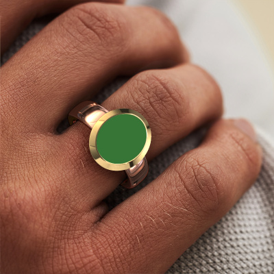 La massives chevalière Oscar 3 ci-dessus est sertie d'un émail vert forme ovale et a toute une tradition. La chevalière était traditionnellement transmise de père en fils. Avec cette massives chevalière forgée en or rose, vous pouvez donc créez votre propre tradition. Nous aimerions également vous proposer d’intégrer une gravure, telle qu'un monogramme ou une gravure d'écusson familial. Trouvez plus d'information et les possibilités de gravures dans notre base de connaissances. Vous trouverez les différentes catégories dans la base de connaissances au bas de cette page. Votre tradition commence ici, avec la chevalière forgée contemporains en or rose Oscar 3. Que pensez-vous de cette chevalière contemporains en or rose ? Vous pouvez créer cette chevalière Oscar 3 via notre configurateur. Votre chevalière personnelle royaux est par la suite fabriquée à la main par nos orfèvres. Le choix du métal précieux et des pierres précieuses peut être entièrement personnalisé. Avez-vous certaines idées pour votre chevalière, mais vous ne pouvez pas trouver nos options qui leur correspondent ? Alors faites-nous le savoir. Nous fabriquons votre chevalière personnelle contemporains entièrement selon vos souhaits.Notre équipe de designers talentueux et passionnés ajoute chaque jour de nouveaux modèles bagues à notre collection en ligne. Notre objectif est de pouvoir vous offrir une grande variété de bijoux. N'hésitez pas à demander un devis si vous avez des souhaits spécifiques pour votre bague. Nous garantissons de vous faire une offre que vous ne pourrez pas refuser.En combinant les dernières techniques modernes, associées à une fabrication ancienne, nous sommes en mesure de fabriquer nos bagues dans notre propre studio. Chaque bijou est fabriqué sur commande. Ceci est avantageux car nous sommes en mesure de vous proposer un prix que vous ne trouverez nulle part ailleurs.Pour vous faciliter la tâche, vous pouvez facilement nous retourner tout bijou commandé dans les 30 jours suivant la livraison.