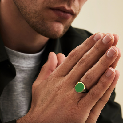 La lourdes chevalière Herman 5 ci-dessus est sertie d'un émail vert forme ovale et a toute une tradition. La chevalière était traditionnellement transmise de père en fils. Avec cette lourdes chevalière forgée en or jaune, vous pouvez donc créez votre propre tradition. Nous aimerions également vous proposer d’intégrer une gravure, telle qu'un monogramme ou une gravure d'écusson familial. Trouvez plus d'information et les possibilités de gravures dans notre base de connaissances. Vous trouverez les différentes catégories dans la base de connaissances au bas de cette page. Votre tradition commence ici, avec la chevalière forgée classiques en or jaune Herman 5. Que pensez-vous de cette chevalière classiques en or jaune ? Vous pouvez créer cette chevalière Herman 5 via notre configurateur. Votre chevalière personnelle meilleurs prix est par la suite fabriquée à la main par nos orfèvres. Le choix du métal précieux et des pierres précieuses peut être entièrement personnalisé. Avez-vous certaines idées pour votre chevalière, mais vous ne pouvez pas trouver nos options qui leur correspondent ? Alors faites-nous le savoir. Nous fabriquons votre chevalière personnelle classiques entièrement selon vos souhaits.