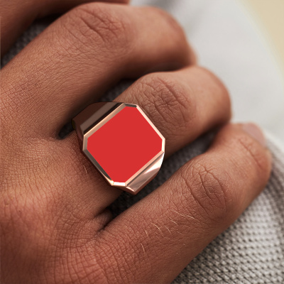 La lourdes chevalière Lars 3 ci-dessus est sertie d'un émail rouge octogone et a toute une tradition. La chevalière était traditionnellement transmise de père en fils. Avec cette lourdes chevalière forgée en or rose, vous pouvez donc créez votre propre tradition. Nous aimerions également vous proposer d’intégrer une gravure, telle qu'un monogramme ou une gravure d'écusson familial. Trouvez plus d'information et les possibilités de gravures dans notre base de connaissances. Vous trouverez les différentes catégories dans la base de connaissances au bas de cette page. Votre tradition commence ici, avec la chevalière forgée classiques en or rose Lars 3. Que pensez-vous de cette chevalière classiques en or rose ? Vous pouvez créer cette chevalière Lars 3 via notre configurateur. Votre chevalière personnelle cools est par la suite fabriquée à la main par nos orfèvres. Le choix du métal précieux et des pierres précieuses peut être entièrement personnalisé. Avez-vous certaines idées pour votre chevalière, mais vous ne pouvez pas trouver nos options qui leur correspondent ? Alors faites-nous le savoir. Nous fabriquons votre chevalière personnelle classiques entièrement selon vos souhaits.