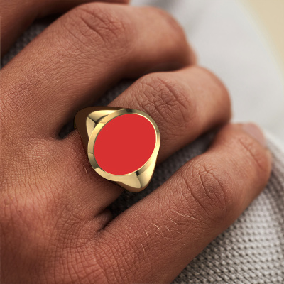 La massives chevalière Herman 4 ci-dessus est sertie d'un émail rouge forme ovale et a toute une tradition. La chevalière était traditionnellement transmise de père en fils. Avec cette massives chevalière forgée en or jaune, vous pouvez donc créez votre propre tradition. Nous aimerions également vous proposer d’intégrer une gravure, telle qu'un monogramme ou une gravure d'écusson familial. Trouvez plus d'information et les possibilités de gravures dans notre base de connaissances. Vous trouverez les différentes catégories dans la base de connaissances au bas de cette page. Votre tradition commence ici, avec la chevalière forgée classiques en or jaune Herman 4. Une fois que vous avez conçu votre chevalière Herman 4 avec notre configurateur, nos orfèvres se mettent à sa fabrication pour vous. La fabrication se fait de manière traditionnelle avec passion et soin. De plus, nous travaillons avec des matériaux extraits de façon équitable. Si vous voulez changer quelque chose, vous pouvez le faire avec notre configurateur. Si vous avez des souhaits spécifiques pour votre chevalière, mais si vous ne voyez pas une option qui leur corresponde dans le configurateur, veuillez contacter notre équipe de designers expérimentés.Notre équipe de designers talentueux et passionnés ajoute chaque jour de nouveaux modèles bagues à notre collection en ligne. Notre objectif est de pouvoir vous offrir une grande variété de bijoux. N'hésitez pas à demander un devis si vous avez des souhaits spécifiques pour votre bague. Nous garantissons de vous faire une offre que vous ne pourrez pas refuser.Devez-vous respecter un certain budget ? N'hésitez pas à nous contacter, nous serons heureux de vous conseiller sur toutes les possibilités. Dans tous les cas, nous offrons toutes les bagues à un prix que vous ne trouverez nulle part ailleurs, car nous ne fabriquerons la bague uniquement lorsque vous la commanderez. Cela nous permet de vous donner la garantie du meilleur prix.Pour vous faciliter la tâche, vous pouvez facilement nous retourner tout bijou commandé dans les 30 jours suivant la livraison.