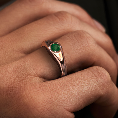Pour l'homme traditionnelles qui a du style et qui aime un style extravagant, nous proposons la étroite bague Thorben forgée en or rose de 14 Carat avec emeraude. Traditionnellement, les bagues pour auriculaires étaient portées pour montrer un certain statut social. La bague pour auriculaire est donc le choix parfait pour l'homme qui veut se démarquer. Nos orfèvres fabriqueront votre bague pour homme sur mesure avec beaucoup de passion et de soin et ce selon vos souhaits. La bague pour homme en or rose présentée ici peut être ajustée à votre convenance avec le configurateur. Si vous avez certaines idées que vous ne pouvez pas appliquer avec le configurateur, vous pouvez toujours les communiquer à nos créateurs de bijoux. Vous pouvez bien sûr toujours nous poser des questions.