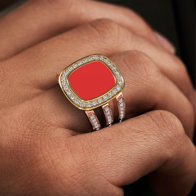 La larges chevalière Tijn ci-dessus est sertie d'un émail rouge rectangle antique et a toute une tradition. La chevalière était traditionnellement transmise de père en fils. Avec cette larges chevalière forgée en or rose, vous pouvez donc créez votre propre tradition. Nous aimerions également vous proposer d’intégrer une gravure, telle qu'un monogramme ou une gravure d'écusson familial. Trouvez plus d'information et les possibilités de gravures dans notre base de connaissances. Vous trouverez les différentes catégories dans la base de connaissances au bas de cette page. Votre tradition commence ici, avec la chevalière forgée exclusives en or rose Tijn. La spéciales chevalière Tijn présentée ici peut être personnalisée selon vos souhaits. Les possibilités offertes par notre configurateur sont très étendues, mais si vous souhaitez ajuster quelque chose à votre chevalière personnelle qui n'est pas proposé en option, vous pouvez toujours nous contacter.De nouveaux modèles de bijoux sont ajoutés à notre collection en ligne quotidiennement. Notre équipe de designers passionnés s'efforce de créer des designs extraordinaires et variés. Avez-vous vu une bague qui vous plait ? N'hésitez pas à nous contacter. Grâce à un bon rapport qualité / prix, nous vous ferons une offre que vous ne pourrez pas refuser !Nos orfèvres ne fabriqueront votre bague qu'une fois que vous l'aurez commandée. Nous ne faisons pas de stock. L'avantage de cela est que nous n'avons pas à inclure les frais de stockage dans nos prix, et nous pouvons donc vous offrir des bijoux à un prix très bas.Pour vous faciliter la tâche, vous pouvez facilement nous retourner tout bijou commandé dans les 30 jours suivant la livraison.