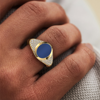 La ovale bague pinky Giovani ci-dessus est sertie d'un lapis lazuli forme ovale et a toute une tradition. La bague pinky était traditionnellement transmise de père en fils. Avec cette ovale bague pinky forgée en or jaune, vous pouvez donc créez votre propre tradition. Nous aimerions également vous proposer d’intégrer une gravure, telle qu'un monogramme ou une gravure d'écusson familial. Trouvez plus d'information et les possibilités de gravures dans notre base de connaissances. Vous trouverez les différentes catégories dans la base de connaissances au bas de cette page. Votre tradition commence ici, avec la bague pinky forgée exclusives en or jaune Giovani. Nos orfèvres fabriqueront votre chevalière sur mesure avec beaucoup de passion et de soin et ce selon vos souhaits. La chevalière en or jaune présentée ici peut être ajustée à votre convenance avec le configurateur. Si vous avez certaines idées que vous ne pouvez pas appliquer avec le configurateur, vous pouvez toujours les communiquer à nos créateurs de bijoux. Vous pouvez bien sûr toujours nous poser des questions.De nouveaux modèles de bijoux sont ajoutés à notre collection en ligne quotidiennement. Notre équipe de designers passionnés s'efforce de créer des designs extraordinaires et variés. Avez-vous vu une bague qui vous plait ? N'hésitez pas à nous contacter. Grâce à un bon rapport qualité / prix, nous vous ferons une offre que vous ne pourrez pas refuser !Devez-vous respecter un certain budget ? N'hésitez pas à nous contacter, nous serons heureux de vous conseiller sur toutes les possibilités. Dans tous les cas, nous offrons toutes les bagues à un prix que vous ne trouverez nulle part ailleurs, car nous ne fabriquerons la bague uniquement lorsque vous la commanderez. Cela nous permet de vous donner la garantie du meilleur prix.Pour vous faciliter la tâche, vous pouvez facilement nous retourner tout bijou commandé dans les 30 jours suivant la livraison.