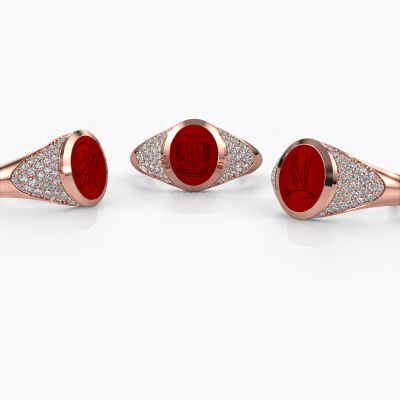 La ovale bague pinky Giovani ci-dessus est sertie d'un cornaline forme ovale et a toute une tradition. La bague pinky était traditionnellement transmise de père en fils. Avec cette ovale bague pinky forgée en or rose, vous pouvez donc créez votre propre tradition. Nous aimerions également vous proposer d’intégrer une gravure, telle qu'un monogramme ou une gravure d'écusson familial. Trouvez plus d'information et les possibilités de gravures dans notre base de connaissances. Vous trouverez les différentes catégories dans la base de connaissances au bas de cette page. Votre tradition commence ici, avec la bague pinky forgée exclusives en or rose Giovani. Nos orfèvres fabriqueront votre chevalière sur mesure avec beaucoup de passion et de soin et ce selon vos souhaits. La chevalière en or rose présentée ici peut être ajustée à votre convenance avec le configurateur. Si vous avez certaines idées que vous ne pouvez pas appliquer avec le configurateur, vous pouvez toujours les communiquer à nos créateurs de bijoux. Vous pouvez bien sûr toujours nous poser des questions.De nouveaux modèles de bijoux sont ajoutés à notre collection en ligne quotidiennement. Notre équipe de designers passionnés s'efforce de créer des designs extraordinaires et variés. Avez-vous vu une bague qui vous plait ? N'hésitez pas à nous contacter. Grâce à un bon rapport qualité / prix, nous vous ferons une offre que vous ne pourrez pas refuser !Devez-vous respecter un certain budget ? N'hésitez pas à nous contacter, nous serons heureux de vous conseiller sur toutes les possibilités. Dans tous les cas, nous offrons toutes les bagues à un prix que vous ne trouverez nulle part ailleurs, car nous ne fabriquerons la bague uniquement lorsque vous la commanderez. Cela nous permet de vous donner la garantie du meilleur prix.Pour vous faciliter la tâche, vous pouvez facilement nous retourner tout bijou commandé dans les 30 jours suivant la livraison.