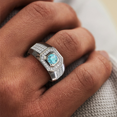 Vous recherchez une bague pour homme modernes forgée en platine, car elle vous permettra de vous démarquer ? Dans ce cas, notre bague pour homme forgée en platine avec un topaze bleue ronds Pavan est la bague parfaite pour vous. Vous voyez ici la bague forgée en or, et celle-ci peut être aussi entièrement adaptée à vos souhaits. Montrez ce que vous valez avec la bague forgée en platine Pavan sertie d’un topaze bleue, la bague d’un homme ambitieux. La royaux bague pour homme Pavan présentée ici peut être personnalisée selon vos souhaits. Les possibilités offertes par notre configurateur sont très étendues, mais si vous souhaitez ajuster quelque chose à votre bague pour homme personnelle qui n'est pas proposé en option, vous pouvez toujours nous contacter.