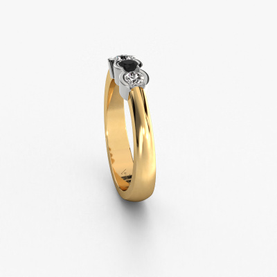 Cette bague style 3 pierres porte le nom de Lotte 3. Ce type de bague s'appelle «Mémoire», car elle est créée avec un profil droit. Cela permet de porter la bague à côté d'autres bagues. Cette bague est en or jaune 14 Carat et contient un diamant noir associé à une diamant de 0.12 crt serties sur l'anneau. Comme vous pouvez le constater, avec cette belle mémoire pour femmes en or jaune, de diamants noirs sont sertis les uns à côté des autres sur la bague. Le sens de l'mémoire est littéralement de 'travailler ensemble'. Et c’est exactement ce que font ces pierres précieuses : ensemble, elles créent un effet spécial supplémentaire sur l'anneau avec un anneau modernes ! Une belle symbolique pour un anneau, non ? Tous les diamants noirs soigneusement sélectionnés sont placés à la main par notre maître orfèvre. Un travail très précis, qui tire le meilleur parti de notre combinaison unique d'artisanat pur et des techniques d'orfèvre les plus modernes. Toutes les pierres précieuses doivent être serties exactement de la même manière pour diffuser parfaitement la lumière. Par conséquent, l'orfèvre gardera cette bague sous la lumière pour voir si les diamants noirs sont placés correctement. Cela demande une main habile et beaucoup de patience, mais le résultat est un véritable chef-d'œuvre. Et c'est ce que nous recherchons ! En combinant les dernières techniques modernes, associées à une fabrication ancienne, nous sommes en mesure de fabriquer nos bagues dans notre propre studio. Chaque bijou est fabriqué sur commande. Ceci est avantageux car nous sommes en mesure de vous proposer un prix que vous ne trouverez nulle part ailleurs. Notre équipe de designers talentueux et passionnés ajoute chaque jour de nouveaux modèles bagues à notre collection en ligne. Notre objectif est de pouvoir vous offrir une grande variété de bijoux. N'hésitez pas à demander un devis si vous avez des souhaits spécifiques pour votre bague. Nous garantissons de vous faire une offre que vous ne pourrez pas refuser. Pour vous faciliter la tâche, vous pouvez facilement nous retourner tout bijou commandé dans les 30 jours suivant la livraison.'