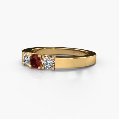 Cette bague style 3 pierres porte le nom de Selina 1. Ce type de bague s'appelle «Mémoire», car elle est créée avec un profil droit. Cela permet de porter la bague à côté d'autres bagues. Cette bague est en or jaune 14 Carat et contient un grenat associé à une diamant de 3.7 mm serties sur l'anneau. Comme vous pouvez le constater, avec cette belle mémoire pour femmes en or jaune, de grenats sont sertis les uns à côté des autres sur la bague. Le sens de l'mémoire est littéralement de 'travailler ensemble'. Et c’est exactement ce que font ces pierres précieuses : ensemble, elles créent un effet spécial supplémentaire sur l'anneau avec un anneau modernes ! Une belle symbolique pour un anneau, non ? Tous les grenats soigneusement sélectionnés sont placés à la main par notre maître orfèvre. Un travail très précis, qui tire le meilleur parti de notre combinaison unique d'artisanat pur et des techniques d'orfèvre les plus modernes. Toutes les pierres précieuses doivent être serties exactement de la même manière pour diffuser parfaitement la lumière. Par conséquent, l'orfèvre gardera cette bague sous la lumière pour voir si les grenats sont placés correctement. Cela demande une main habile et beaucoup de patience, mais le résultat est un véritable chef-d'œuvre. Et c'est ce que nous recherchons ! En utilisant nos techniques modernes, nous sommes en mesure de concevoir et de personnaliser les bijoux de la plus haute qualité avec le plus grand soin pour vous. Nos bagues ont toujours un prix inférieur de 30% à celles des autres bijoutiers. Nous fabriquons des bagues à la commande afin de ne pas avoir à garder un stock important. Si vous avez un certain budget, nous serons ravis de vous conseiller tout en le respectant. De nouveaux modèles de bijoux sont ajoutés à notre collection en ligne quotidiennement. Notre équipe de designers passionnés s'efforce de créer des designs extraordinaires et variés. Avez-vous vu une bague qui vous plait ? N'hésitez pas à nous contacter. Grâce à un bon rapport qualité / prix, nous vous ferons une offre que vous ne pourrez pas refuser ! Pour vous faciliter la tâche, vous pouvez facilement nous retourner tout bijou commandé dans les 30 jours suivant la livraison.'