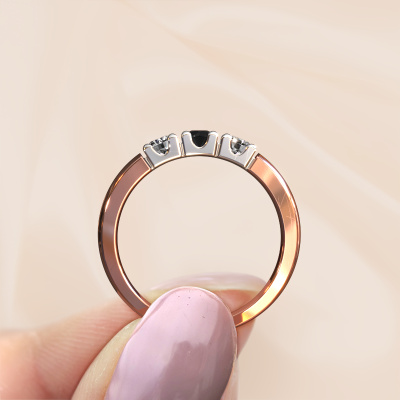 Cette bague style 3 pierres porte le nom de Rianne 3. Ce type de bague s'appelle «Mémoire», car elle est créée avec un profil droit. Cela permet de porter la bague à côté d'autres bagues. Cette bague est en or rose 14 Carat et contient un diamant noir associé à une diamant de 0.18 crt serties sur l'anneau. Comme vous pouvez le constater, avec cette belle mémoire pour femmes en or rose, de diamants noirs sont sertis les uns à côté des autres sur la bague. Le sens de l'mémoire est littéralement de 'travailler ensemble'. Et c’est exactement ce que font ces pierres précieuses : ensemble, elles créent un effet spécial supplémentaire sur l'anneau avec un anneau classiques ! Une belle symbolique pour un anneau, non ? Tous les diamants noirs soigneusement sélectionnés sont placés à la main par notre maître orfèvre. Un travail très précis, qui tire le meilleur parti de notre combinaison unique d'artisanat pur et des techniques d'orfèvre les plus modernes. Toutes les pierres précieuses doivent être serties exactement de la même manière pour diffuser parfaitement la lumière. Par conséquent, l'orfèvre gardera cette bague sous la lumière pour voir si les diamants noirs sont placés correctement. Cela demande une main habile et beaucoup de patience, mais le résultat est un véritable chef-d'œuvre. Et c'est ce que nous recherchons ! En combinant les dernières techniques modernes, associées à une fabrication ancienne, nous sommes en mesure de fabriquer nos bagues dans notre propre studio. Chaque bijou est fabriqué sur commande. Ceci est avantageux car nous sommes en mesure de vous proposer un prix que vous ne trouverez nulle part ailleurs. Notre équipe de designers talentueux et passionnés ajoute chaque jour de nouveaux modèles bagues à notre collection en ligne. Notre objectif est de pouvoir vous offrir une grande variété de bijoux. N'hésitez pas à demander un devis si vous avez des souhaits spécifiques pour votre bague. Nous garantissons de vous faire une offre que vous ne pourrez pas refuser. Pour vous faciliter la tâche, vous pouvez facilement nous retourner tout bijou commandé dans les 30 jours suivant la livraison.'