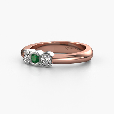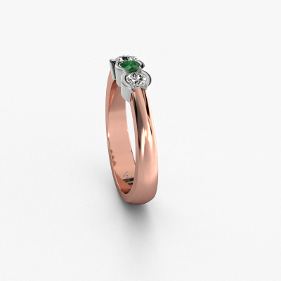 Cette bague style 3 pierres porte le nom de Lotte 3. Ce type de bague s'appelle «Mémoire», car elle est créée avec un profil droit. Cela permet de porter la bague à côté d'autres bagues. Cette bague est en or rose 14 Carat et contient un emeraude associé à une diamant de 3 mm serties sur l'anneau. Comme vous pouvez le constater, avec cette belle mémoire pour femmes en or rose, de émeraudes sont sertis les uns à côté des autres sur la bague. Le sens de l'mémoire est littéralement de 'travailler ensemble'. Et c’est exactement ce que font ces pierres précieuses : ensemble, elles créent un effet spécial supplémentaire sur l'anneau avec un anneau modernes ! Une belle symbolique pour un anneau, non ? Tous les émeraudes soigneusement sélectionnés sont placés à la main par notre maître orfèvre. Un travail très précis, qui tire le meilleur parti de notre combinaison unique d'artisanat pur et des techniques d'orfèvre les plus modernes. Toutes les pierres précieuses doivent être serties exactement de la même manière pour diffuser parfaitement la lumière. Par conséquent, l'orfèvre gardera cette bague sous la lumière pour voir si les émeraudes sont placés correctement. Cela demande une main habile et beaucoup de patience, mais le résultat est un véritable chef-d'œuvre. Et c'est ce que nous recherchons ! En combinant les dernières techniques modernes, associées à une fabrication ancienne, nous sommes en mesure de fabriquer nos bagues dans notre propre studio. Chaque bijou est fabriqué sur commande. Ceci est avantageux car nous sommes en mesure de vous proposer un prix que vous ne trouverez nulle part ailleurs. Notre équipe de designers talentueux et passionnés ajoute chaque jour de nouveaux modèles bagues à notre collection en ligne. Notre objectif est de pouvoir vous offrir une grande variété de bijoux. N'hésitez pas à demander un devis si vous avez des souhaits spécifiques pour votre bague. Nous garantissons de vous faire une offre que vous ne pourrez pas refuser. Pour vous faciliter la tâche, vous pouvez facilement nous retourner tout bijou commandé dans les 30 jours suivant la livraison.'